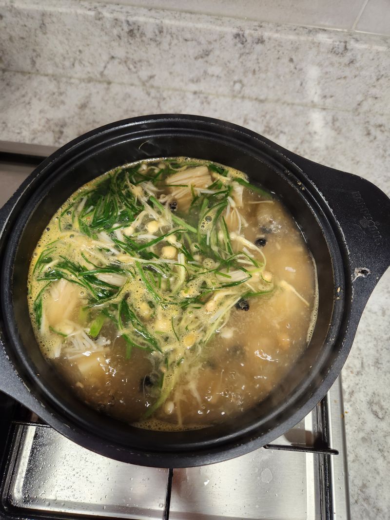 멸치육수에 샘표 토장을 넣고 초록초록 달래와 우렁을 넣어 봄향기 가득한 된장국을 끓이니 온가족이 봄을 느끼며 순삭했답니다♡
