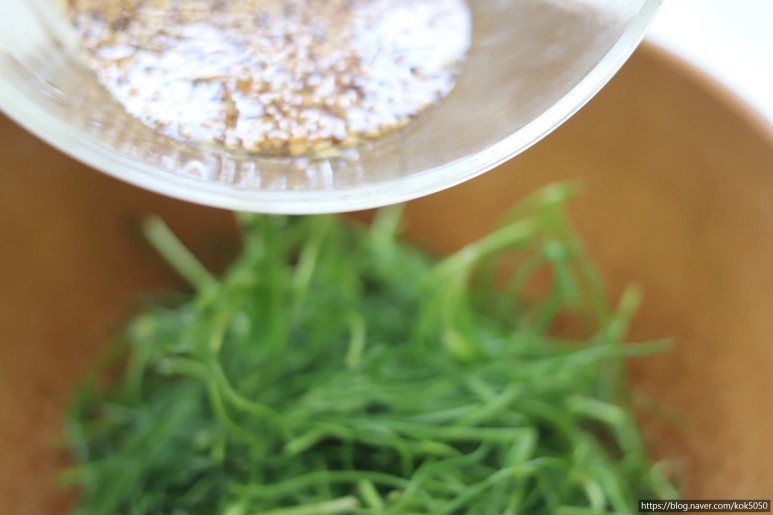 새발나물에 물기를 빼고 양념에 버무려 주면 완성입니다