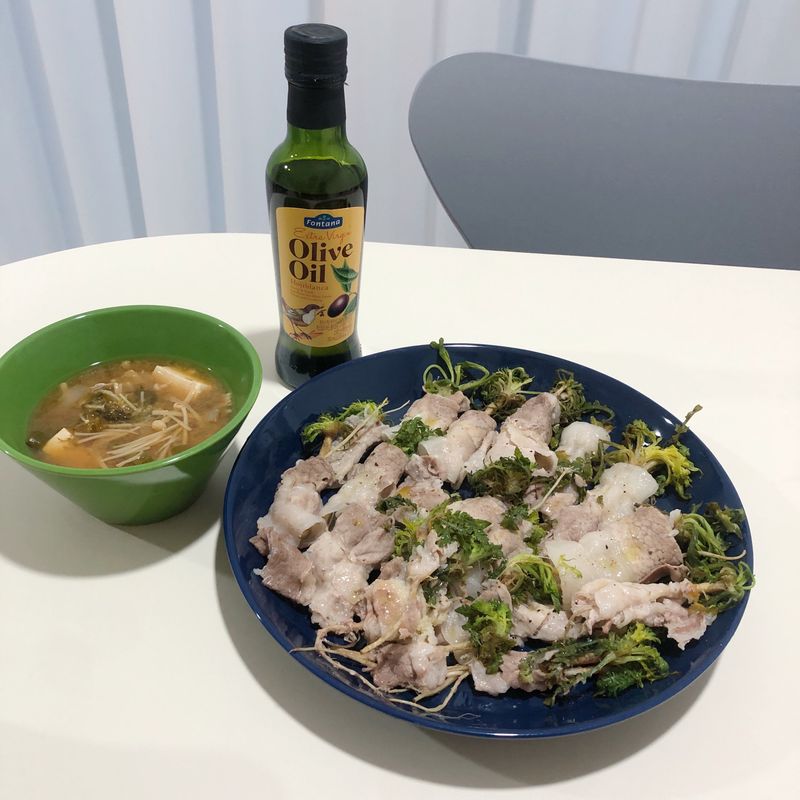 냉이말이찜에 올리브유를 살짝 뿌려 맛의 풍미를 더했답니다~