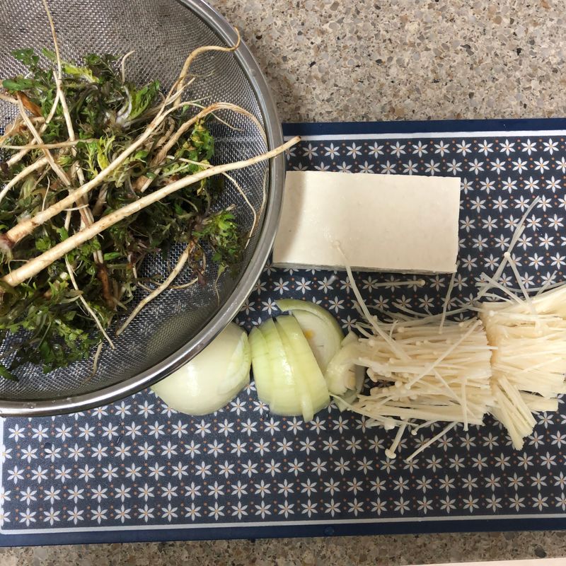 아이들과 냉이가 어떻게 생겼나 알아보고 냉이 된장국과 차돌냉이말이찜을 만들어 보았어요~