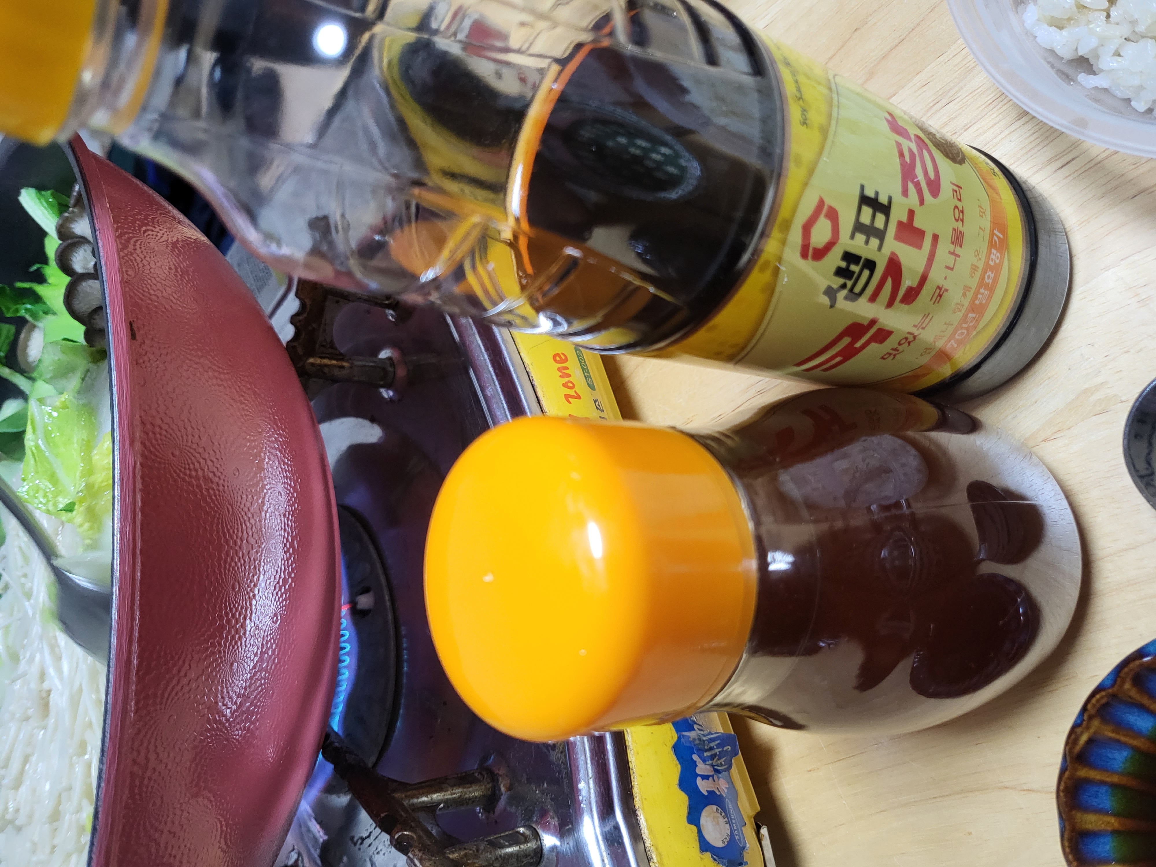 3. 물 1L 를 넣고 연두 4스푼 국간장 3스푼을 넣는다