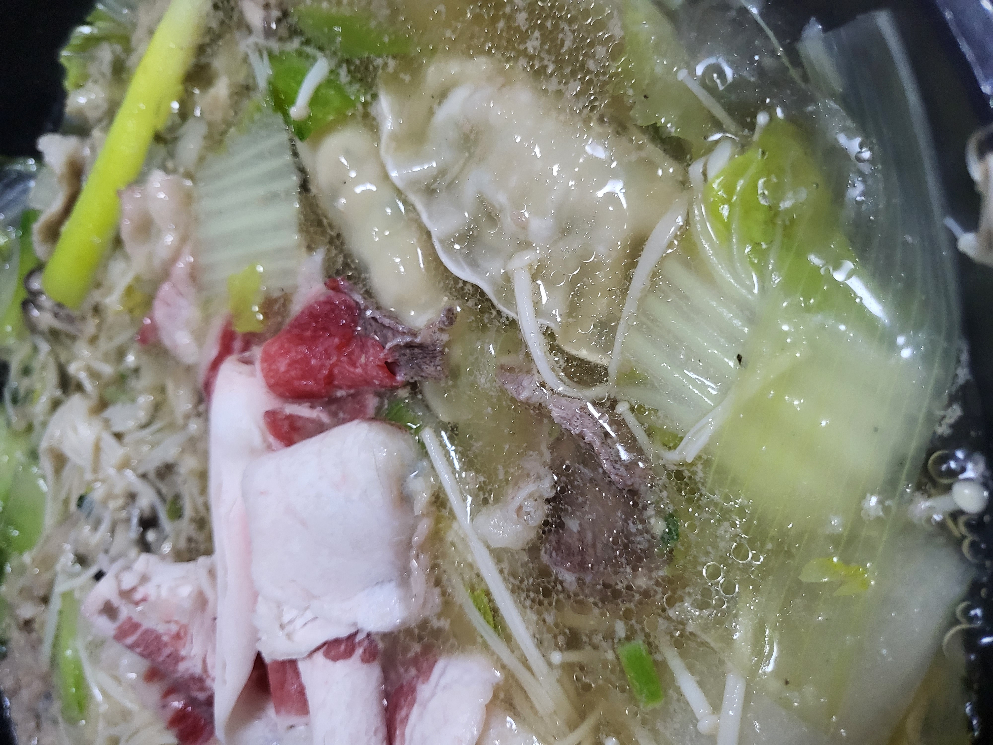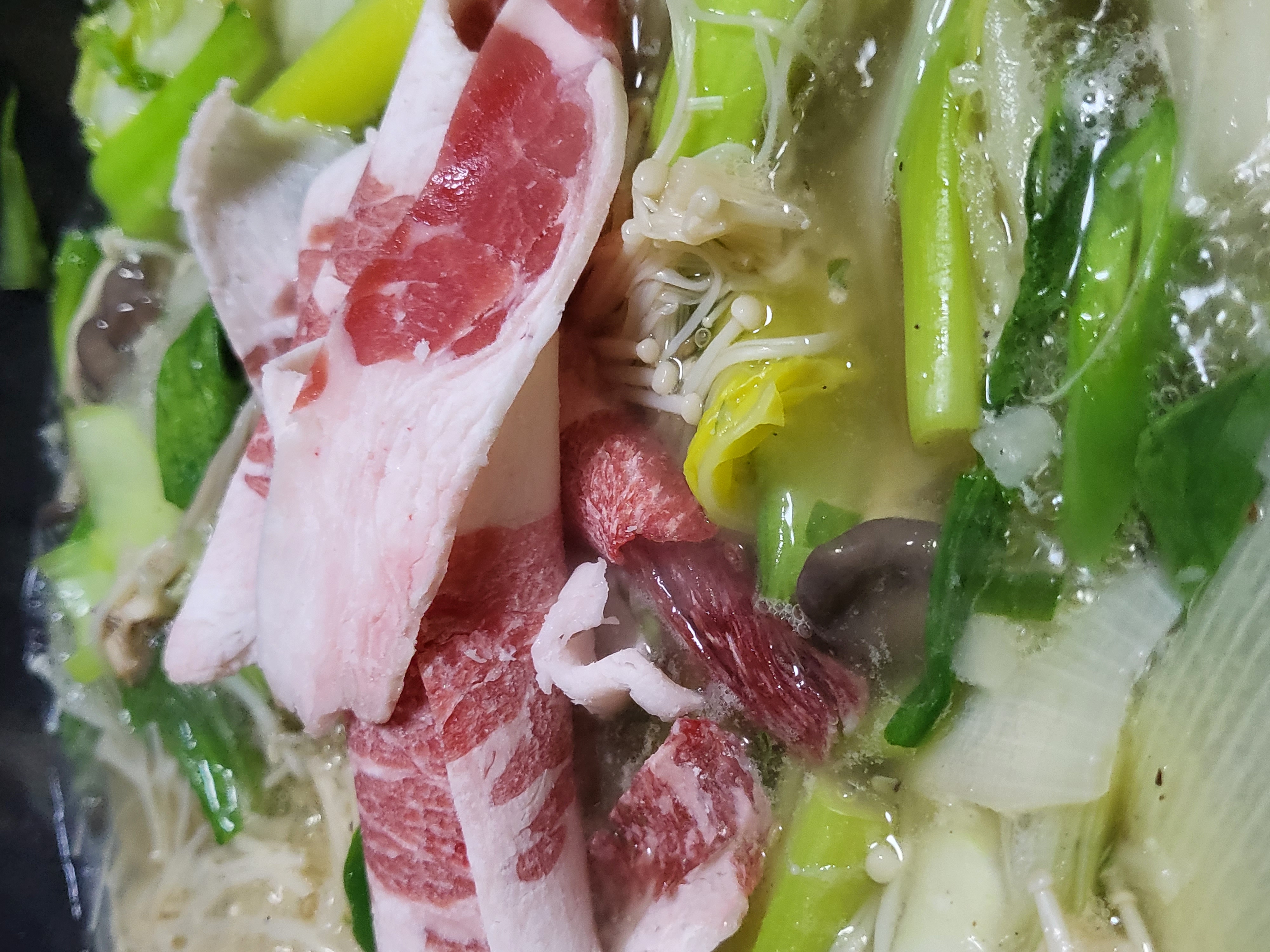 5. 전골이 끓기 시작하면 우삼겹을 넣어서 먹는다(야채도 냠냠)