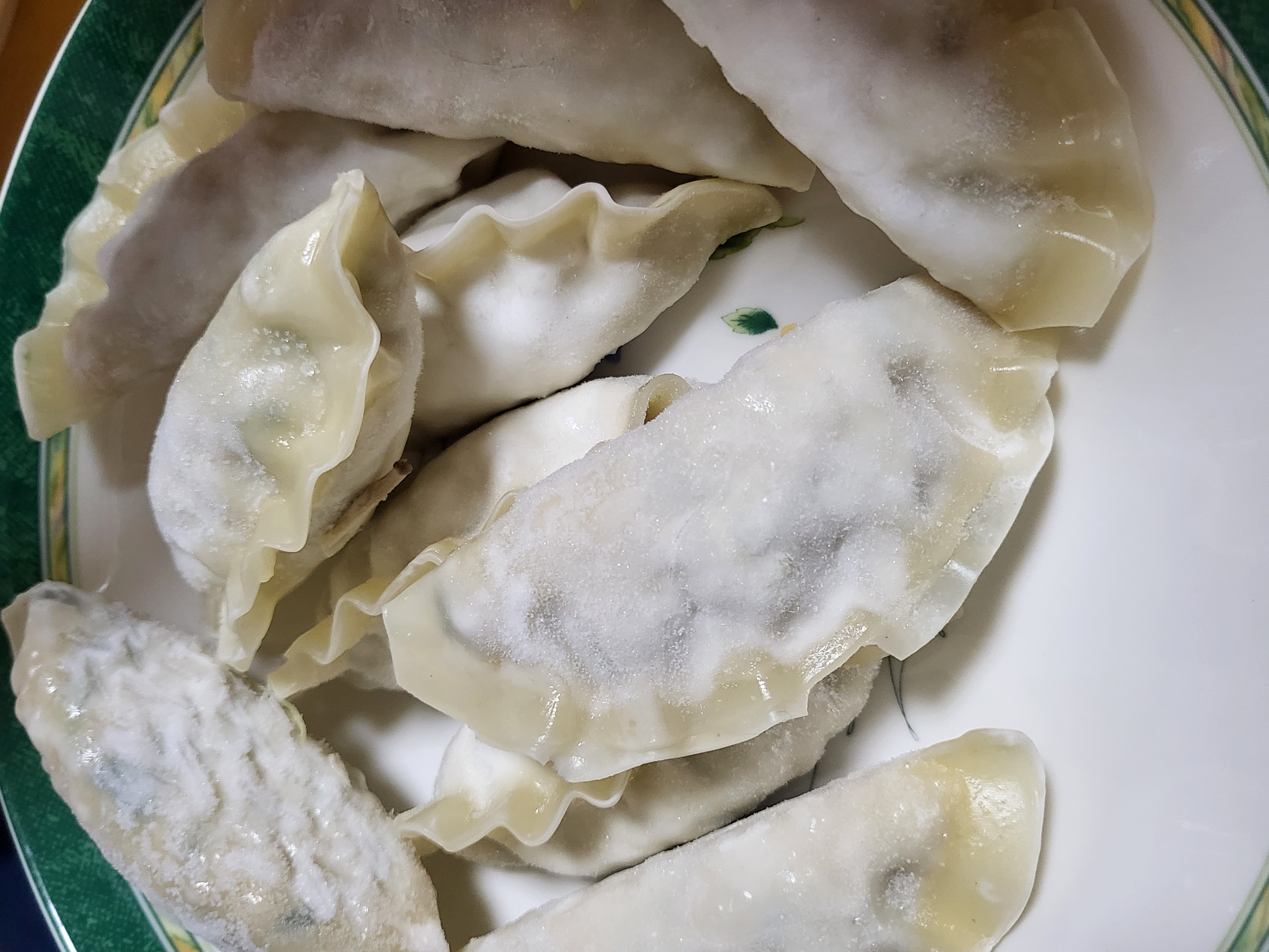 2. 냉동만두 3개를 얇게 썰어서 중간에 담는다(육수용)