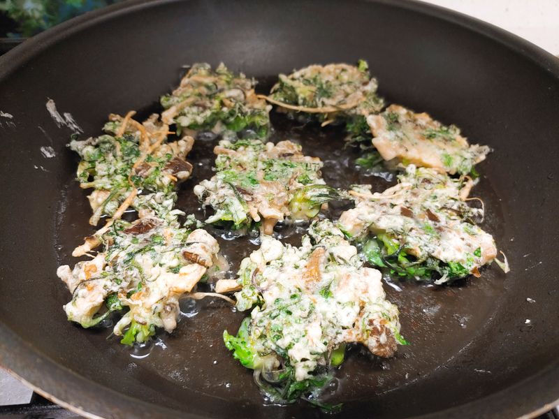시골에서 친정엄마가 손수 냉이를 뜯어 깨끗이 다듬어 보내주셔서 아이들도 좀 먹이고 싶어 냉이전 튀김으로 해줬더니 잘 먹네요!