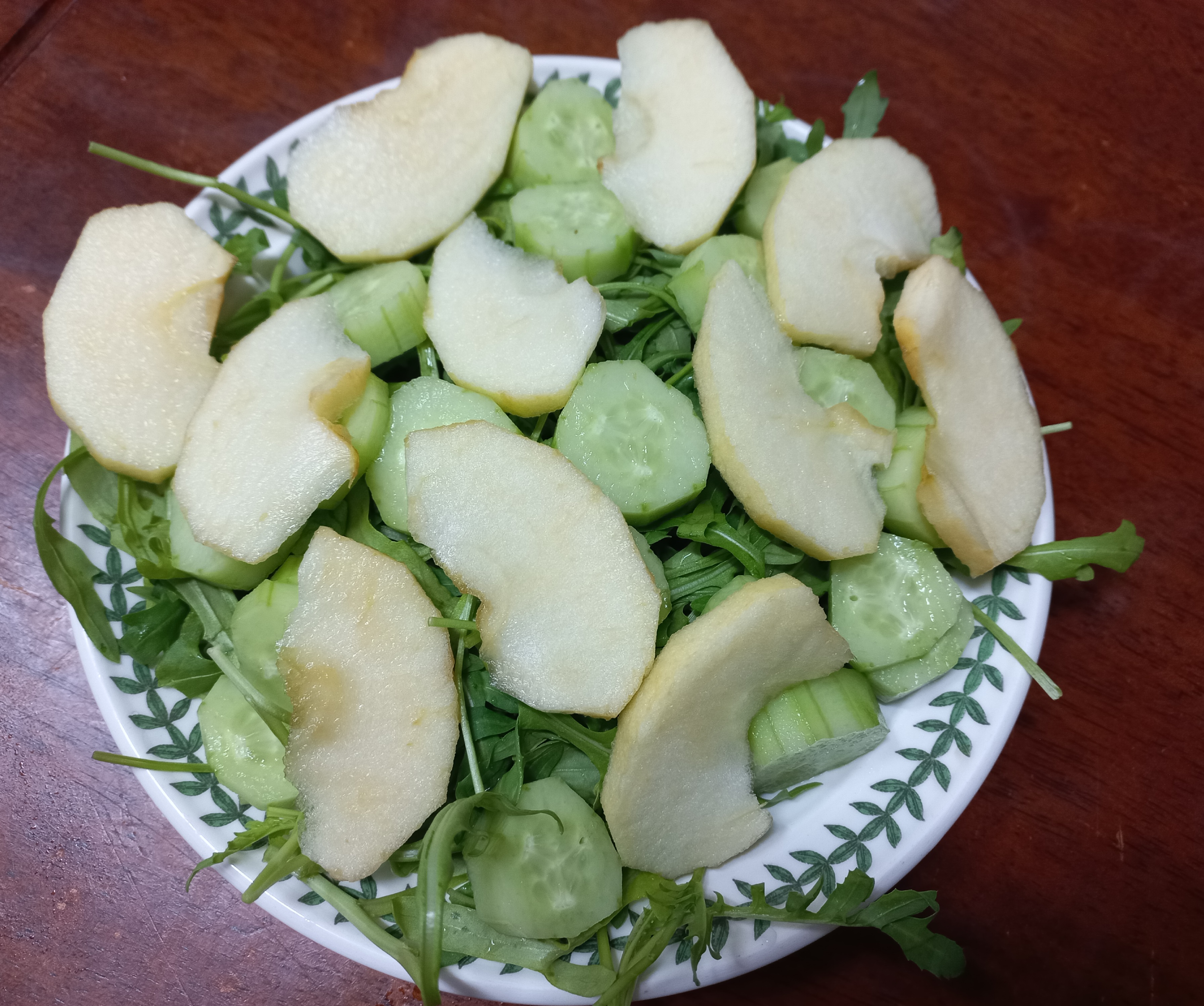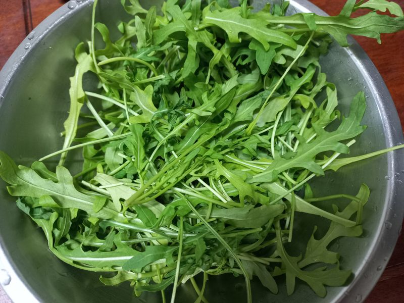 마찬가지로 브로콜리를 삶아서 루꼴라와 사과, 오이등등과 함께 셋팅하고 올리브오일, 소금, 후추, 식초를 합친 소스를 뿌려주면~~쌉싸름한 루꼴라를 상쇄시켜주면서도 건강한 샐러드 완성~