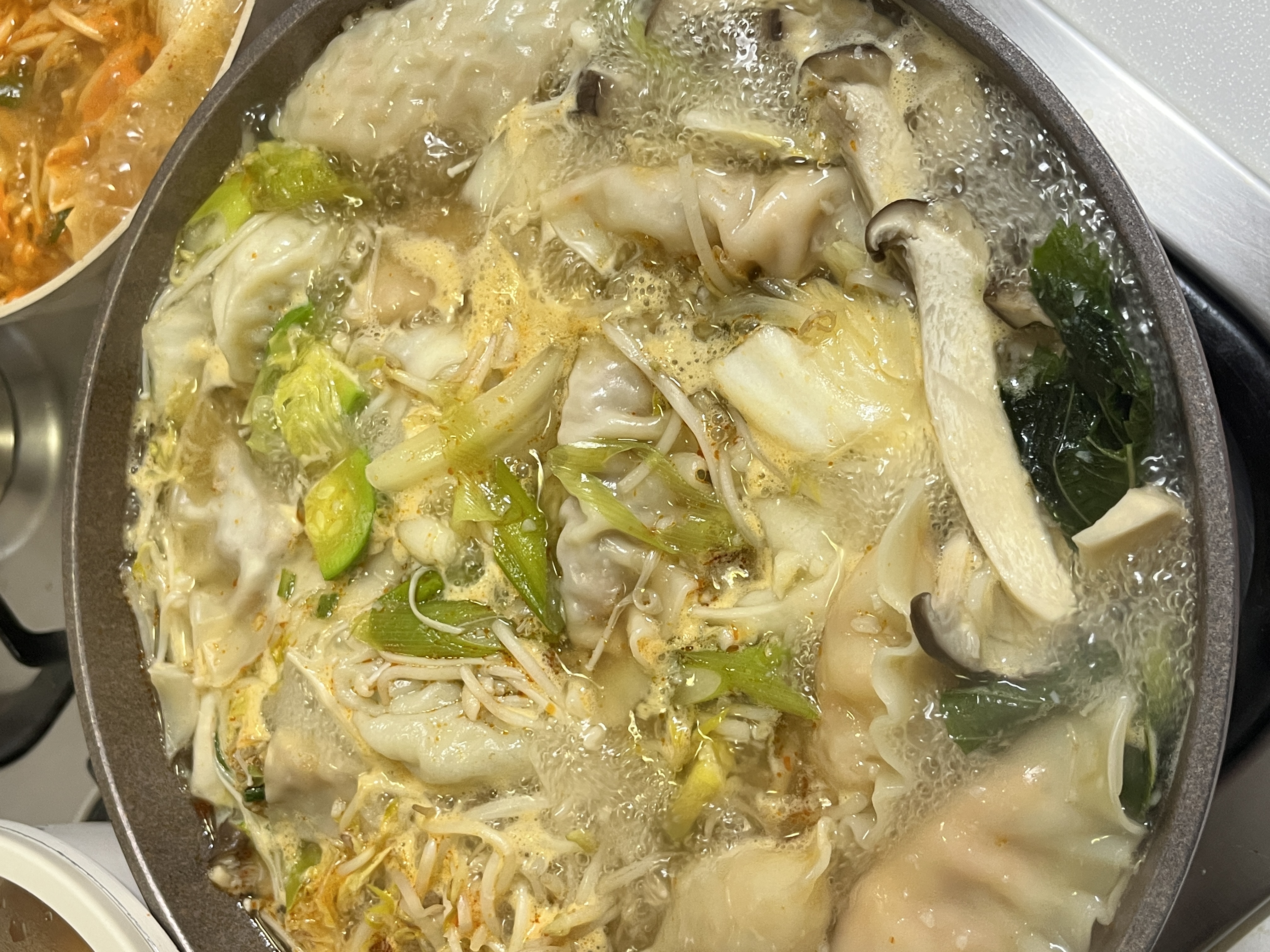 만두랑 좋아하는 채소, 버섯 준비하고 국물만 다르게 해서 2가지 맛 만두 전골 한번에 끓이기!! 나름의 요리 꿀팁 ✨✨