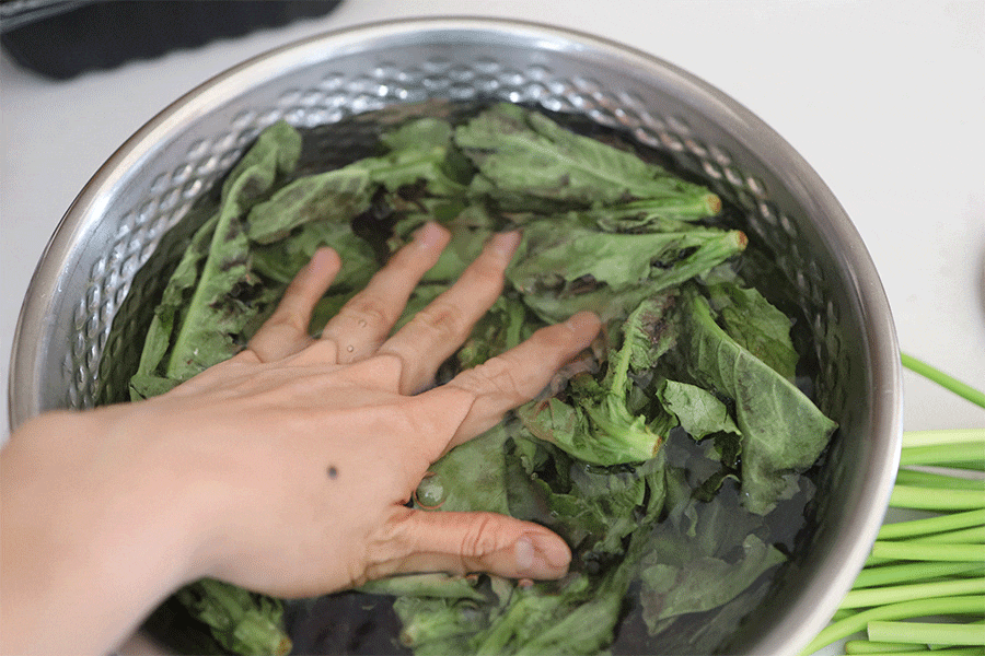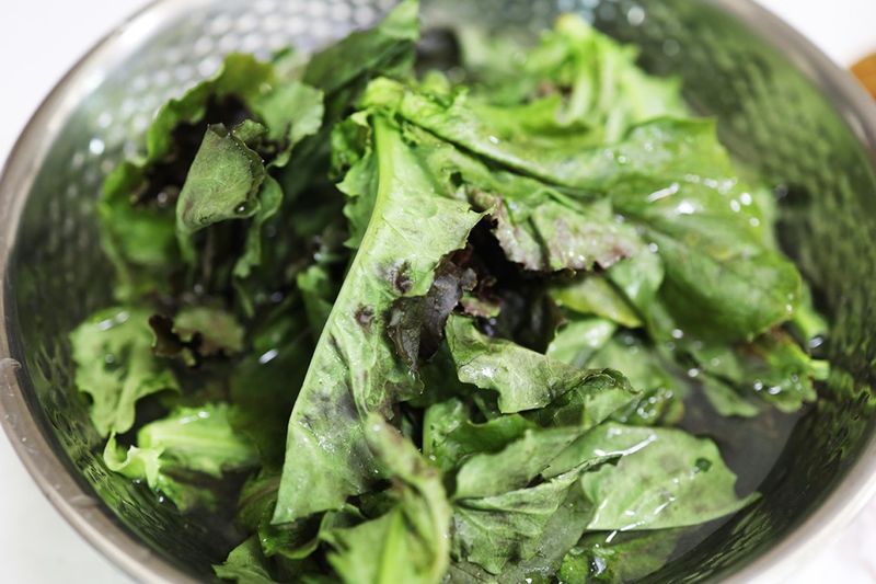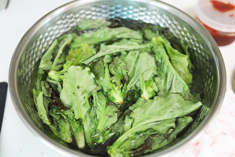 상추가 잠길 정도로 물을 부은 후 상추가 잘 잠기도록 상추가 물에 잘 잠기도록 눌러준 후 30분간 그대로 두시면 됩니다.