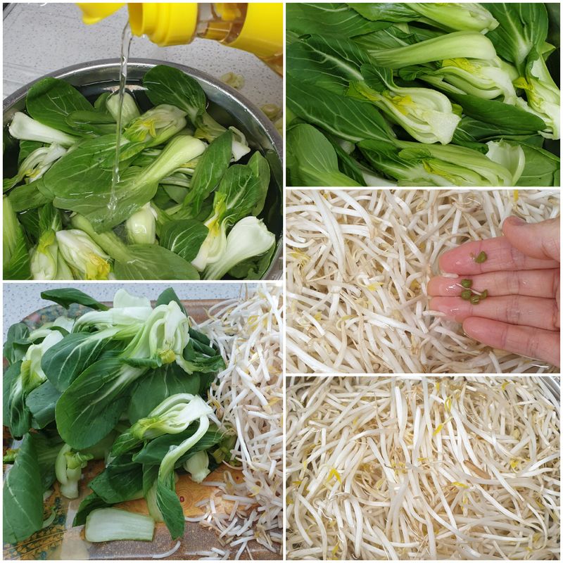 차돌박이 숙주볶음하려고 초록초록한 청경채랑 숙주를 사왔어요^^ 그런데 청경채를 그냥 넣음 크잖아요? 저만의 손질법 올려봅니다~~^^ 꼭지를 자르고 잎을손으로 따거나 칼로반자르기 합니다. 그다음, 찬물에 식초 쪼로록~ 몇분담궜다 헹궈서 볶음요리 마지막에 넣고 후딱 볶아내면 색감도이쁘고 아이도 잘먹는답니다. ^^