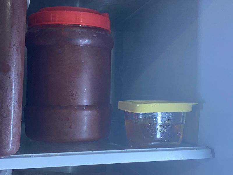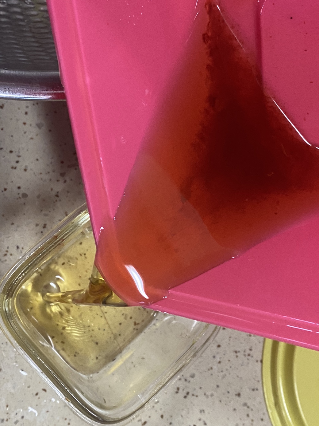양념 통같은 미니통에 식힌후 부어서 닫아 소분해주기(딱1번 쓸분량만)