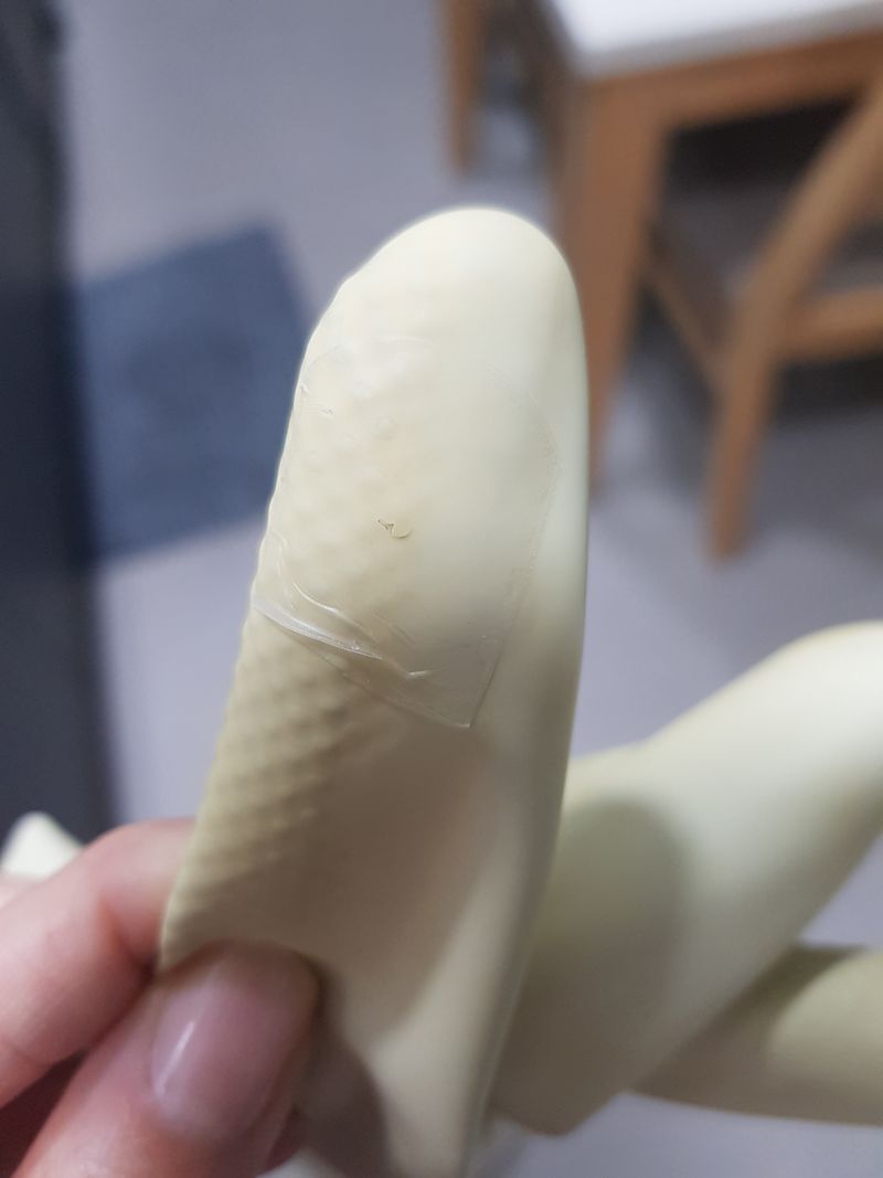 구멍난 고무장갑은 방수밴드로 앞뒤 붙여주면 됩니다