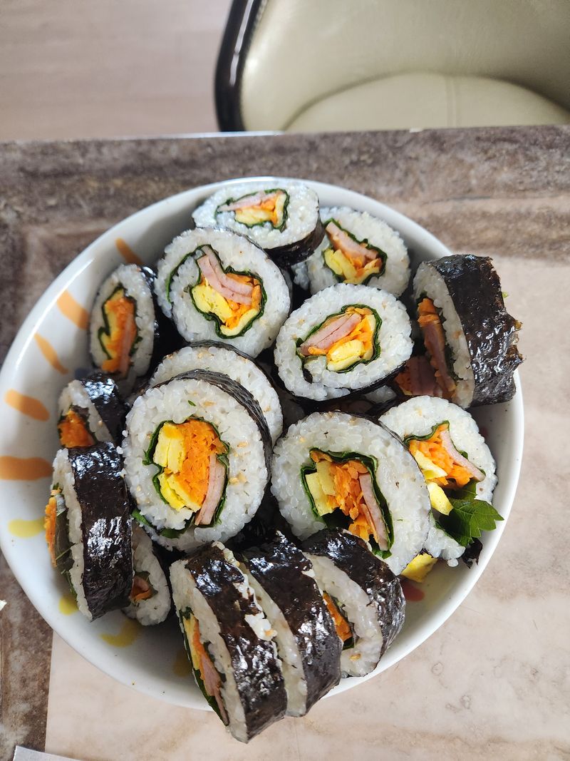 주말의 맞이하여 냉장고털이 했네요~ 있는재료로 김밥싸기ㅎ