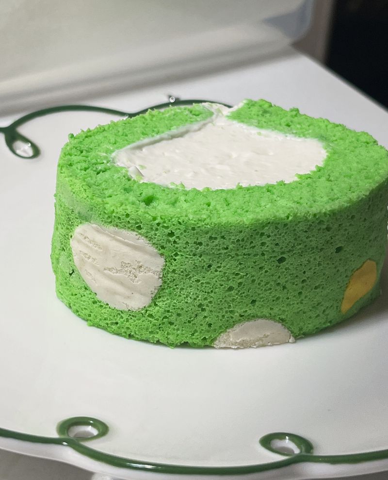 베이킹에 요새 빠져있는데, 롤케잌에 처음 도전해봤어요! 점박이 모양을 원한 건 아니었지만.. 그래도 예쁘게 나와서 다행입니다 ㅎㅎ 예쁘게 잘라 가족에게 맛있게 선물했어요오 💚