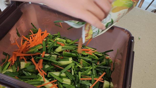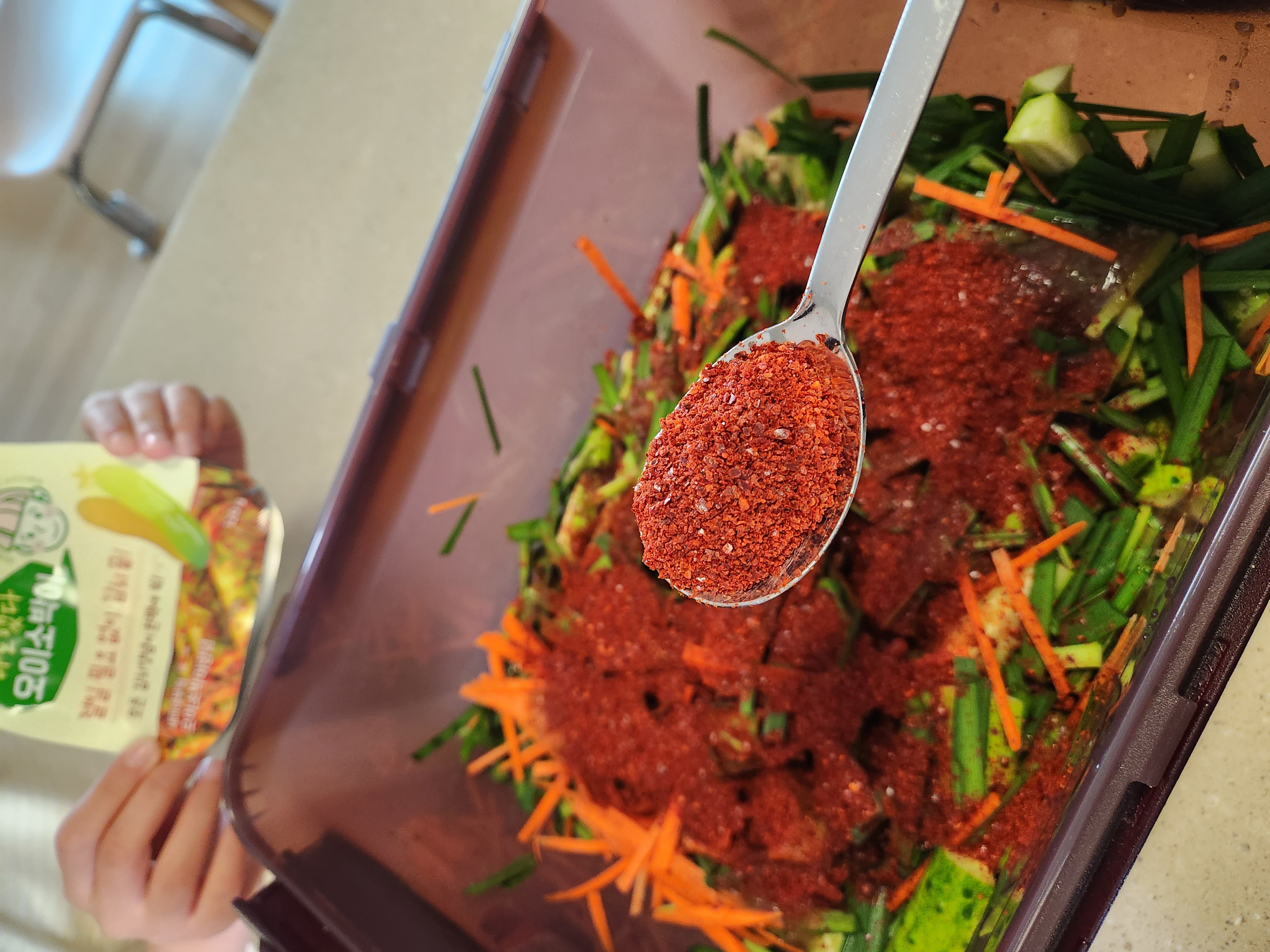3. 새미네부엌 오이소박이 양념, 오이, 부추, 고춧가루 넣고 버무리기