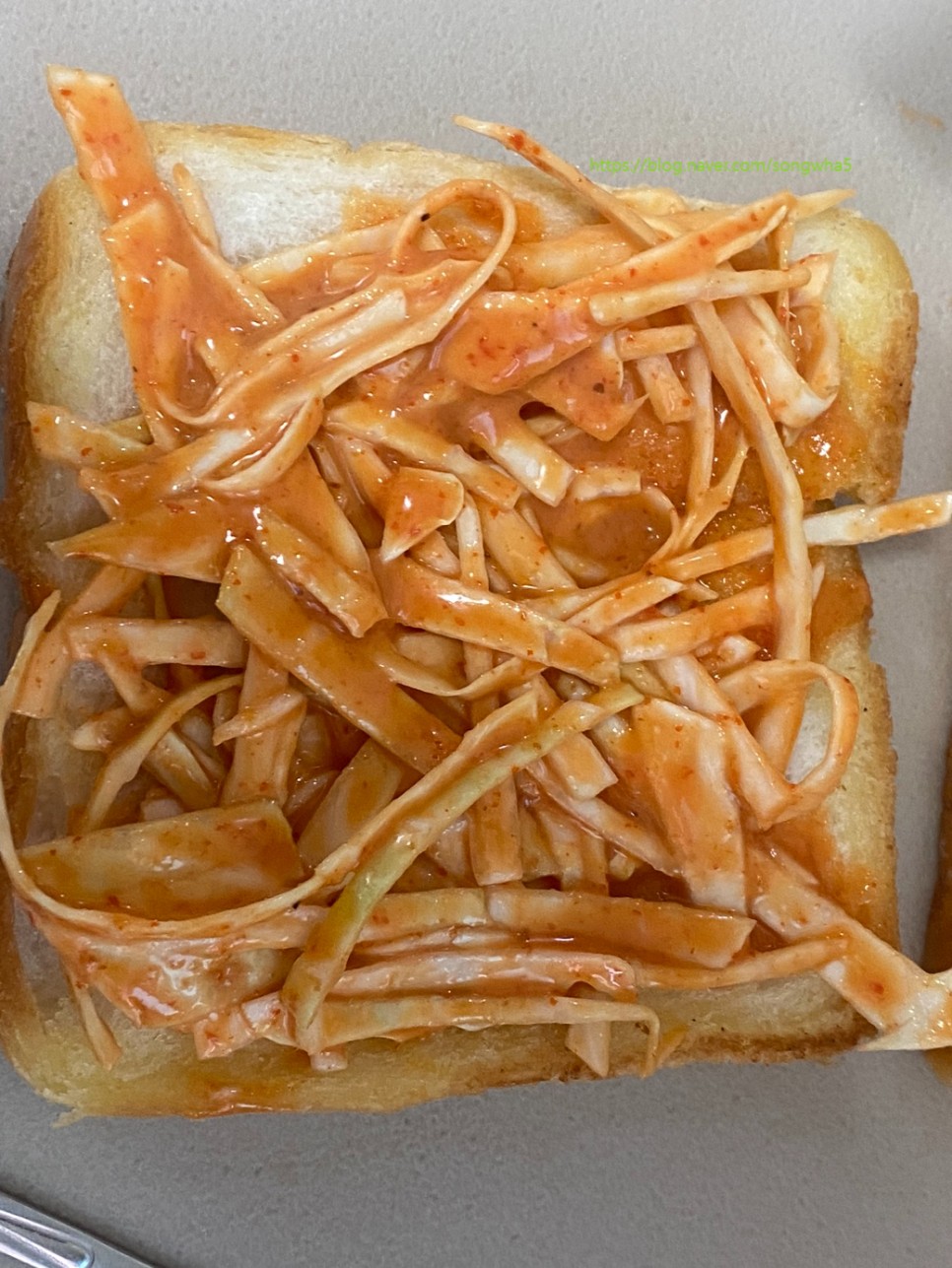 체다치즈., 소세지 등 각종 재료를 더해 만들면