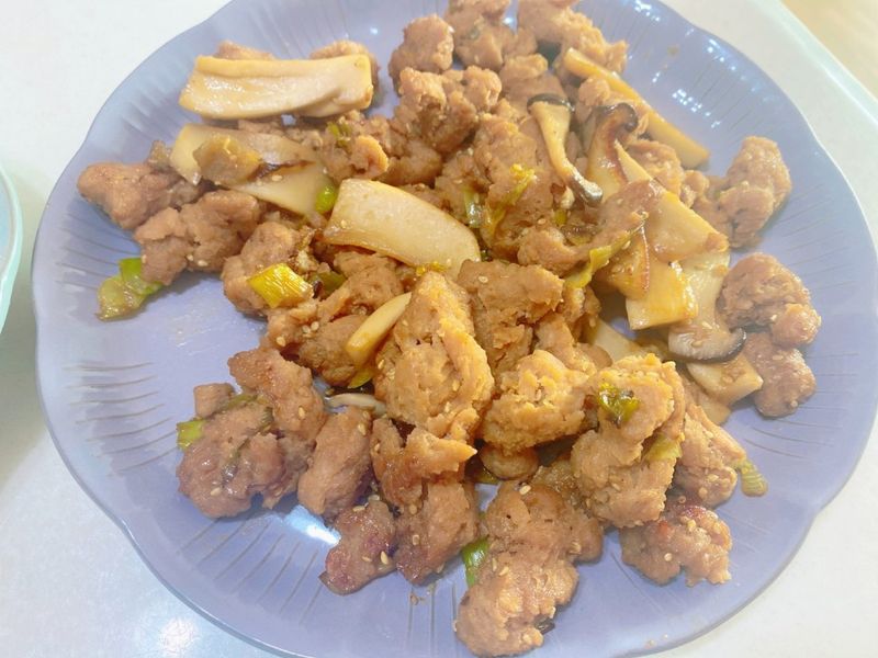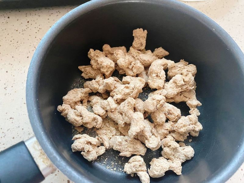 파기름낸후 물에 불린 콩고기를 물기를 짝 쫘준뒤에