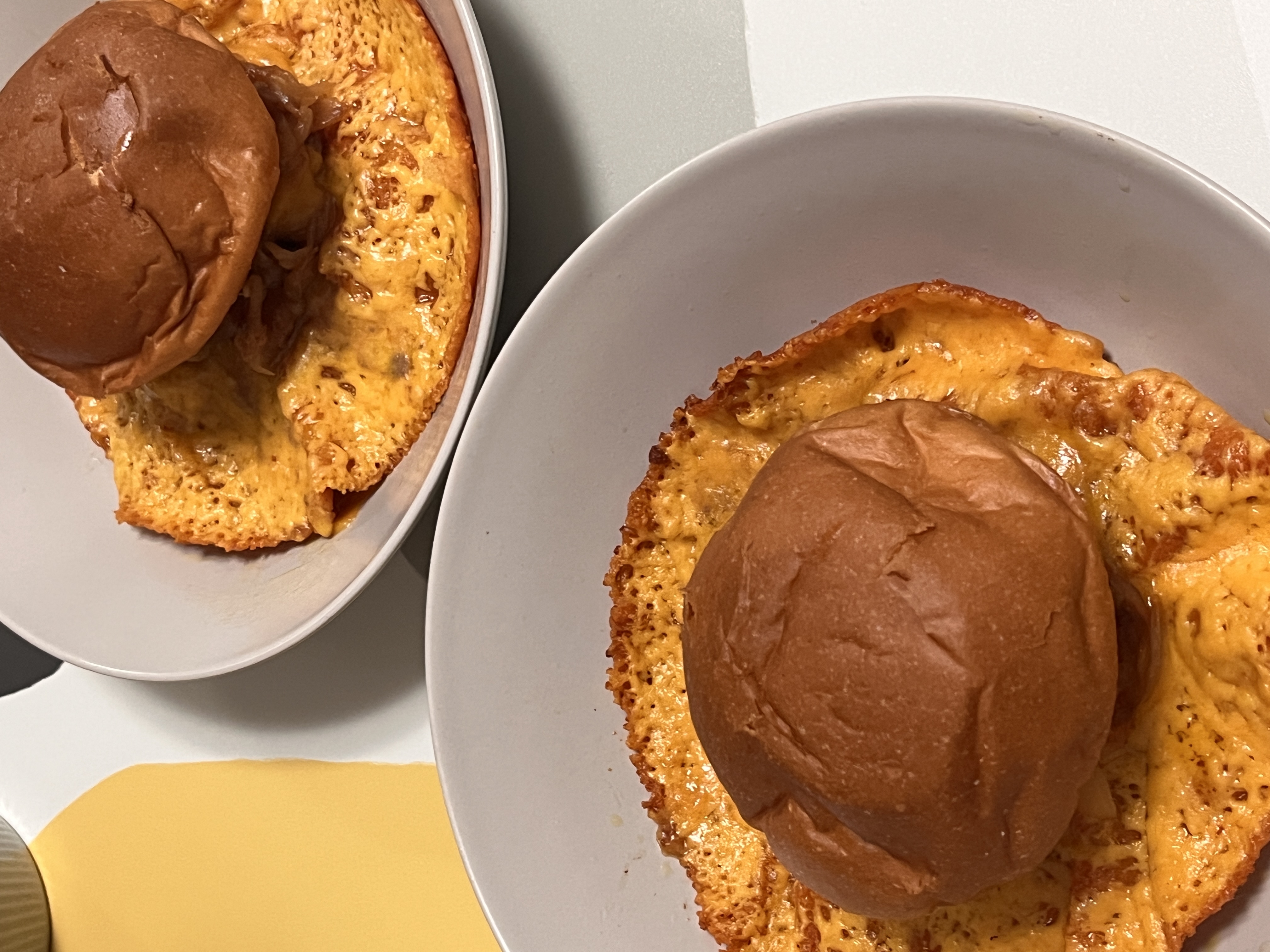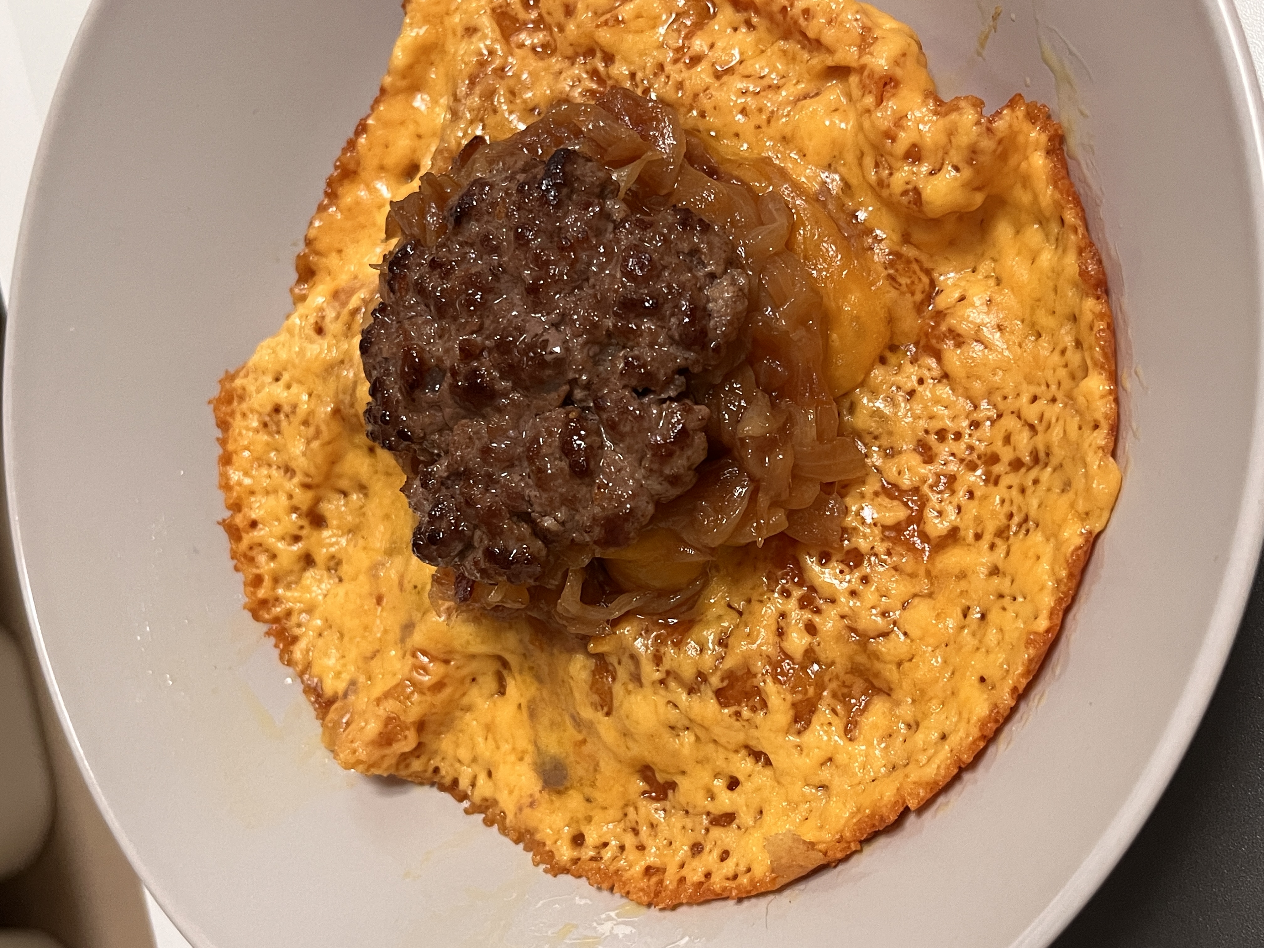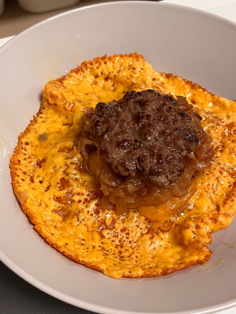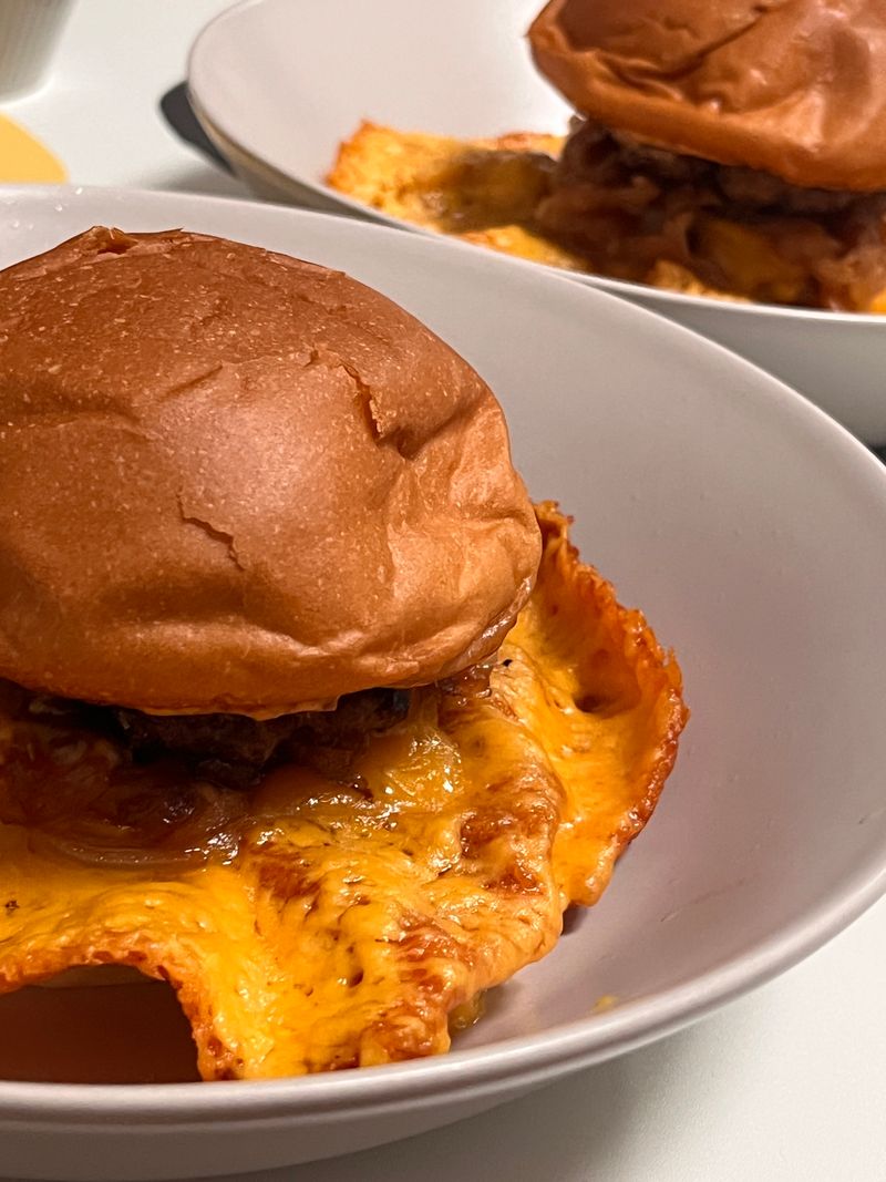 재료는 소고기 다진거 (지방 많게) + 슈레드 치즈 + 햄버거 빵 + 양파에