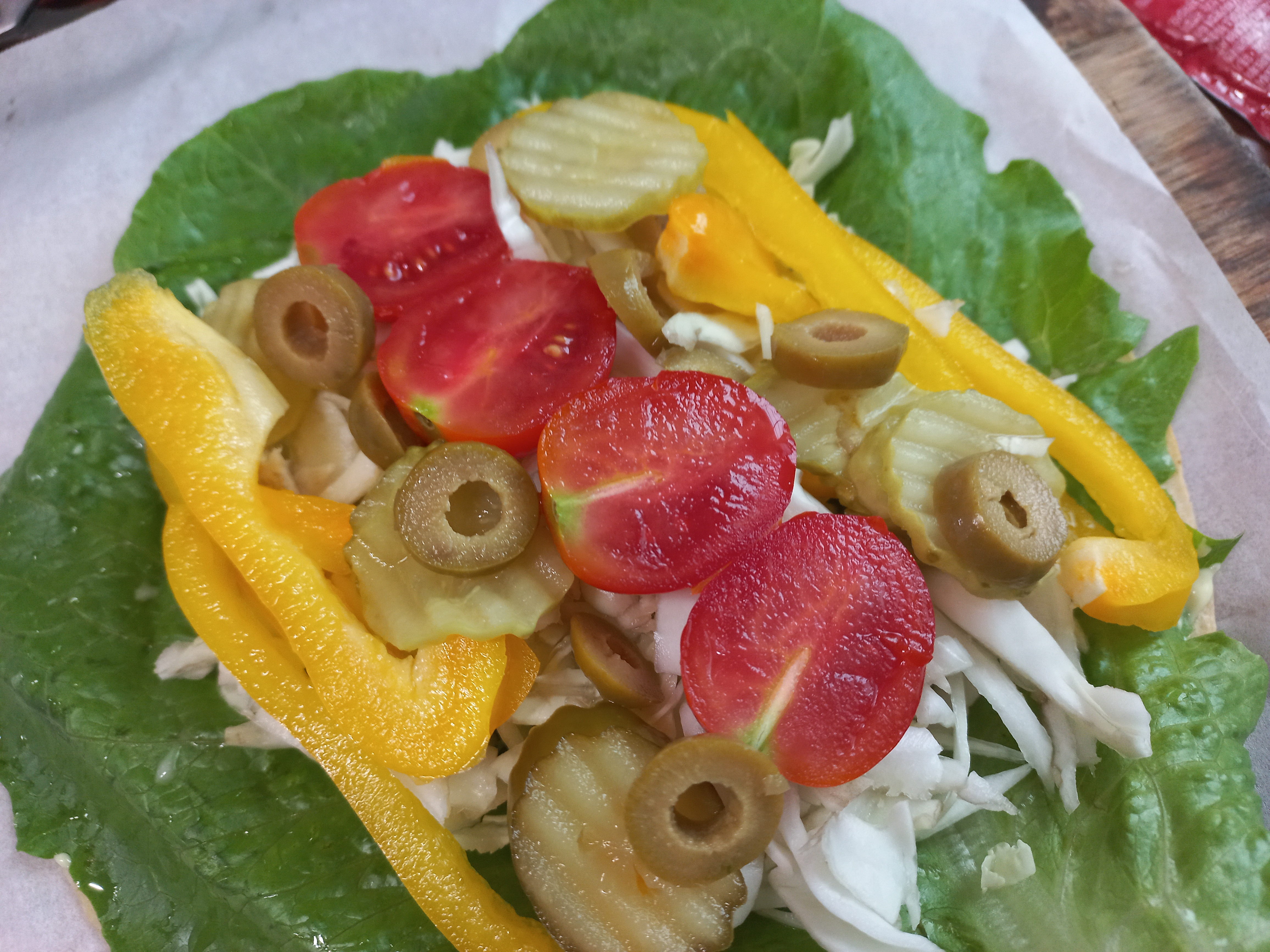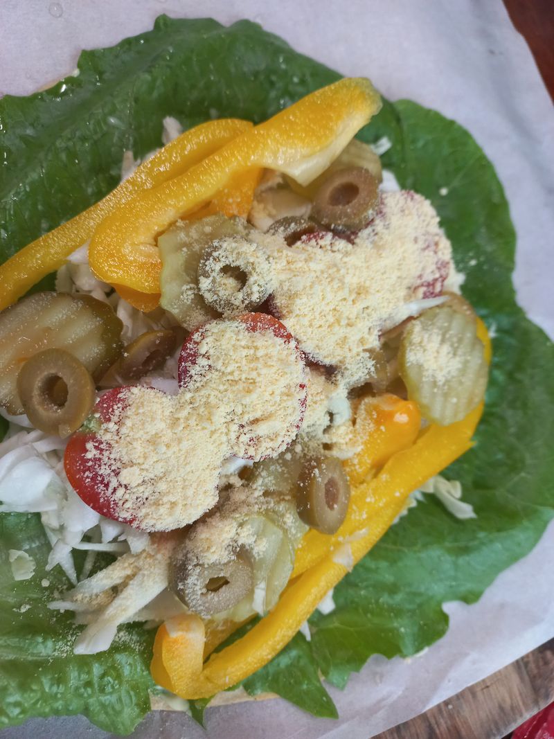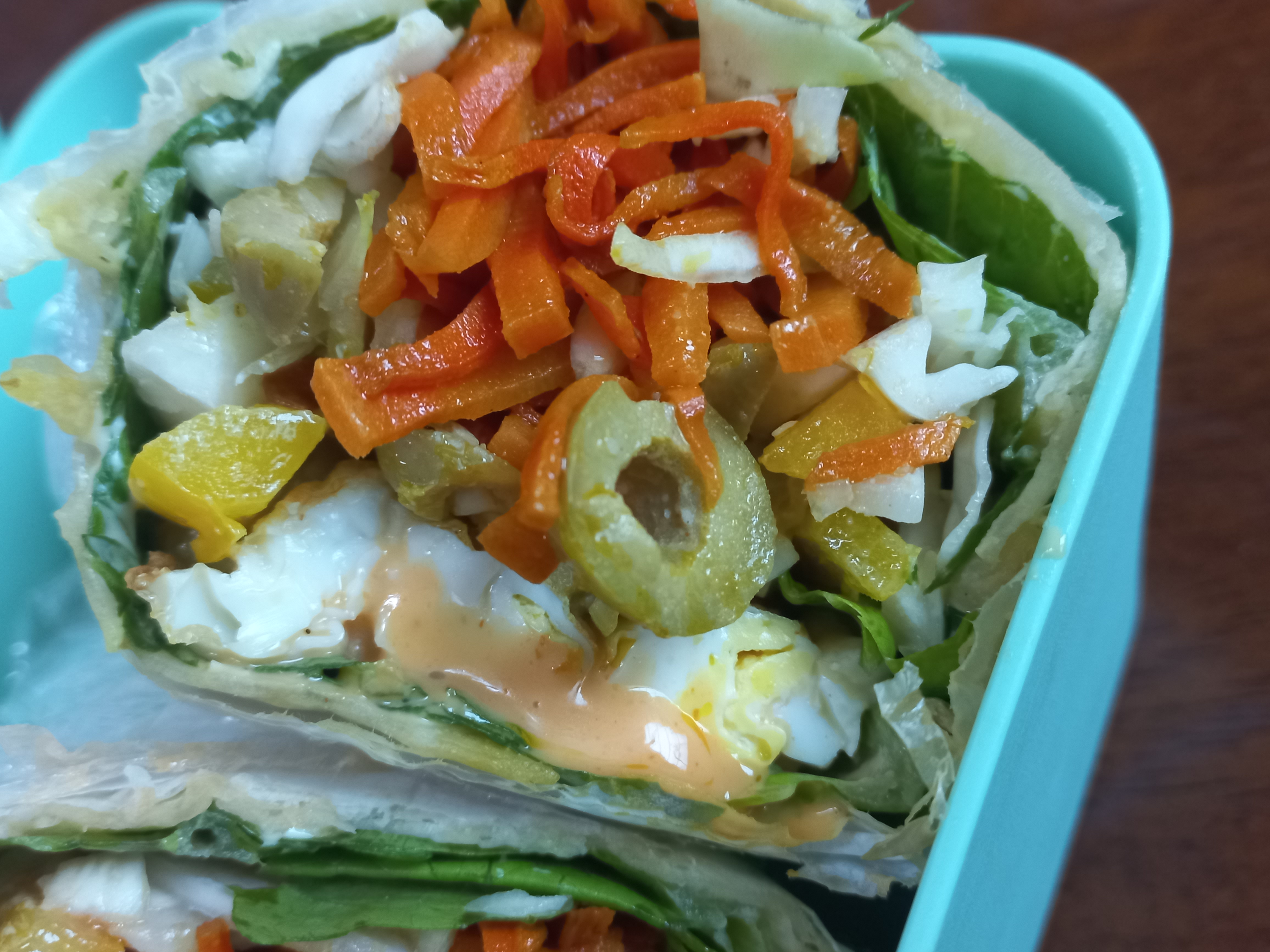 또띠아 보들보들하게 구워서 상추,양배추,파프리카에 방울토마토~~올리브와 피클도 올리고 계란후라이에 마지막으로 스리라차 마요소스까지!