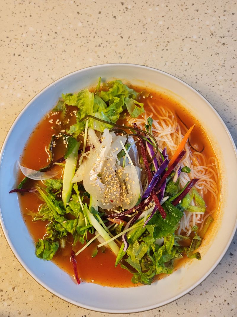 감기 한창 앓고 입맛 잃은 고1 아들이 시원하고 맛있는걸 찾아서 있는재료들로 새콤하게 물회해주니 한그릇 뚝딱했어요