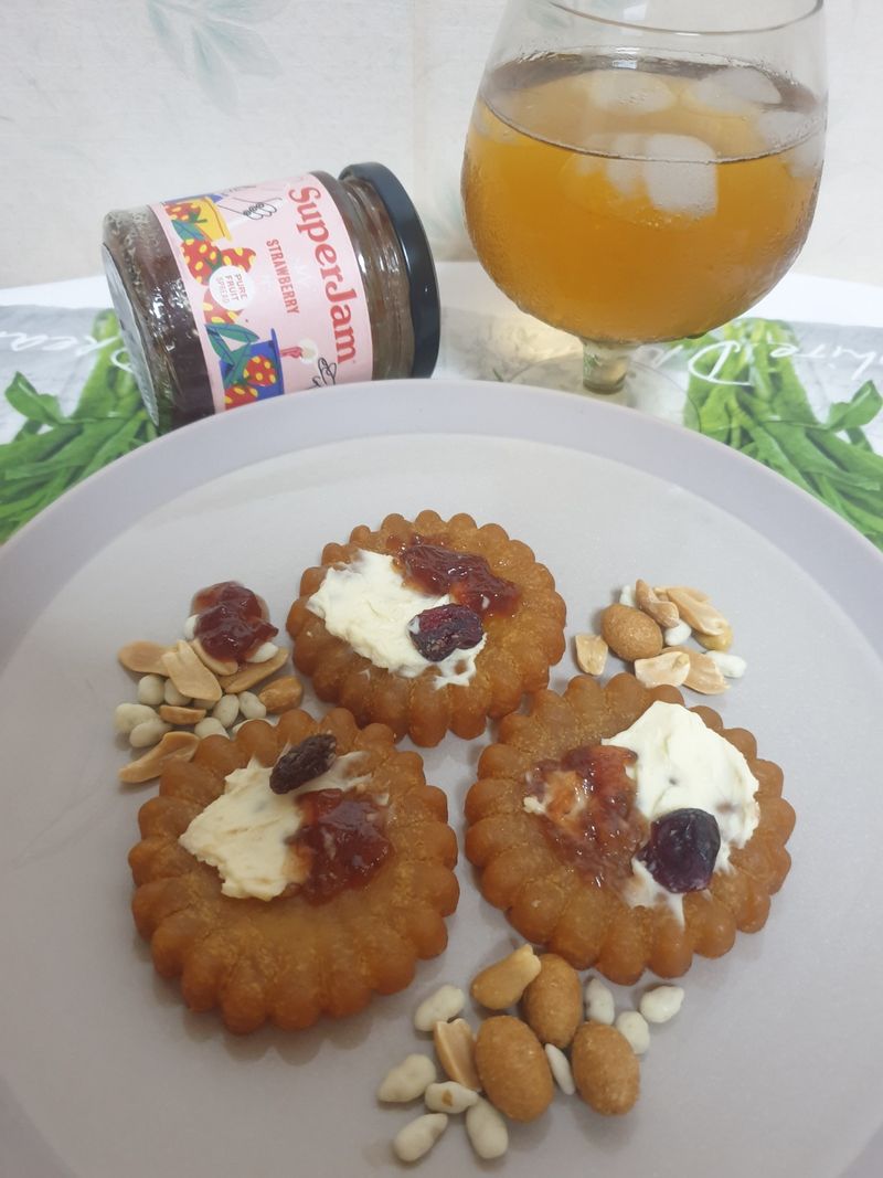 요즘 대세 약과 간식 맛있게 만들었어요. 크림치즈와 딸기잼과 약과의 조합 맛있어요