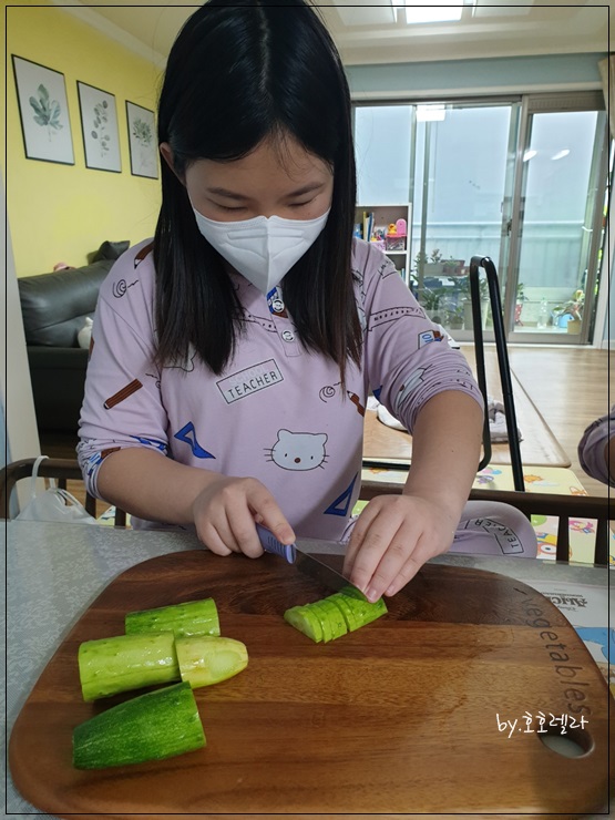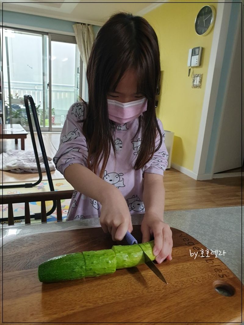 아이가 요리를 야무지게 잘하네요! 😄👍🥒🥒🥒