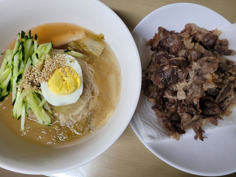 냉면에 고기같이 먹으면 정말 꿀맛이죠! 차돌박이랑 너무 잘어울리는 냉면이네요.