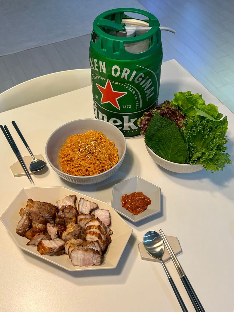 삼겹살 & 비빔면 & 쌈추 이렇게 먹었어요