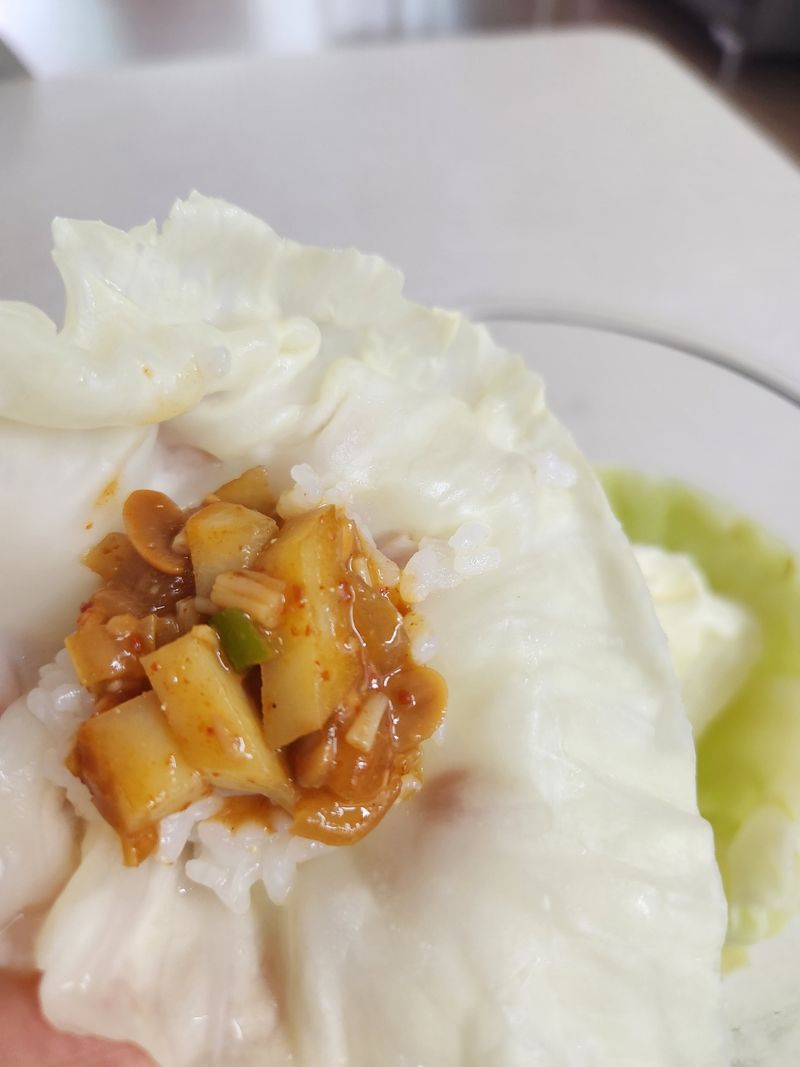 다른 반찬 필요 없이 양배추 쌈 싸먹으면 든든합니다.
