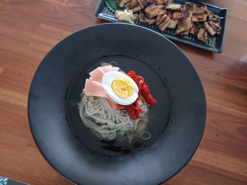 명태회무침 좋아해 한 통 사놓은 게 있어서 냉면 위에 얹어 코다리 냉면으로 먹으면 그야말로 여름 무더위에 사라진 입맛을 찾아줍니다~^^