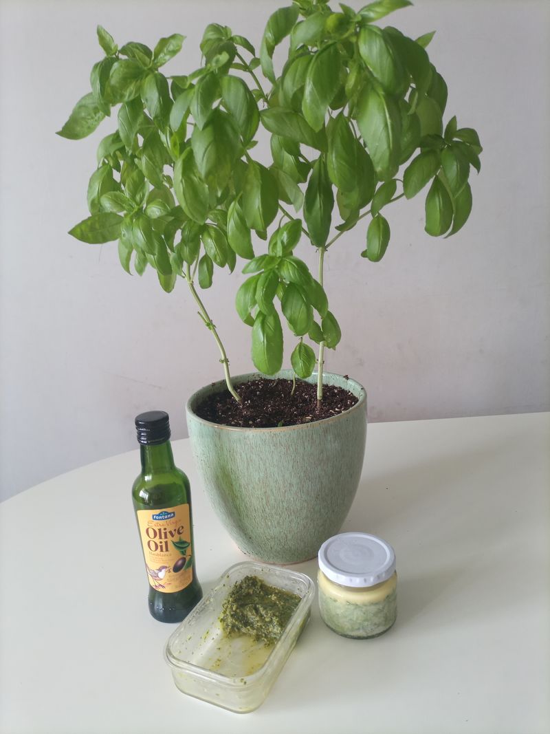 직접 키운 바질로 바질 페스토를 만들었어요.
