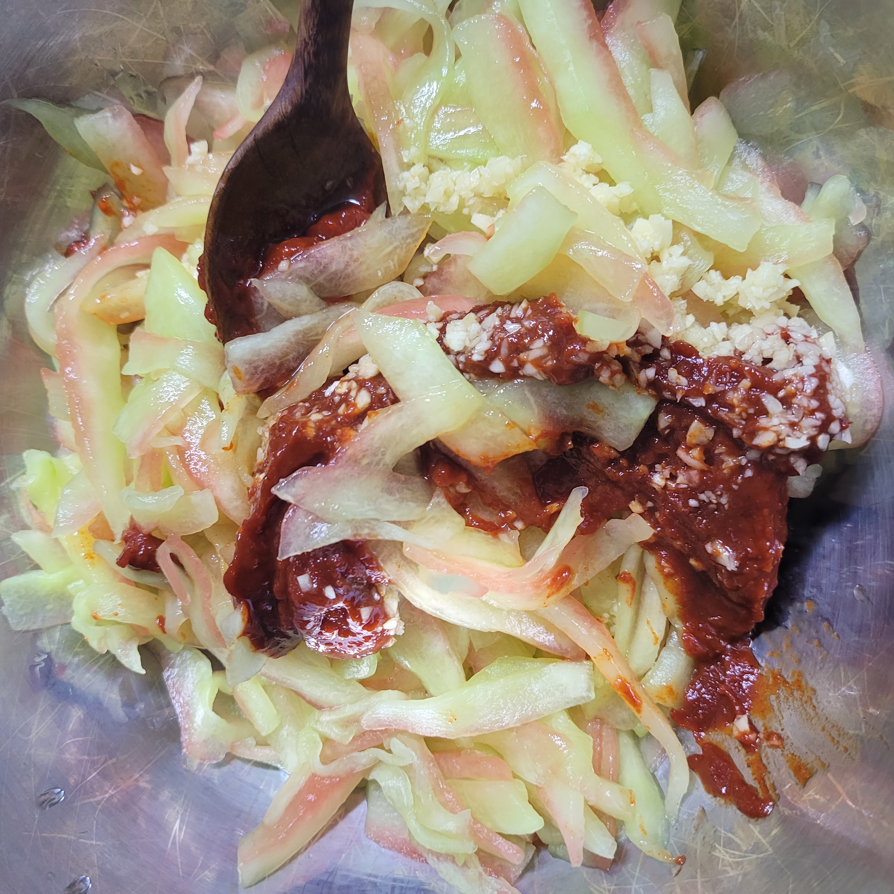 오 무생채처럼! 신기하네요~ 맛은 수박향이 조금 올라오는 무생채 같나요 ㅎㅎ?
