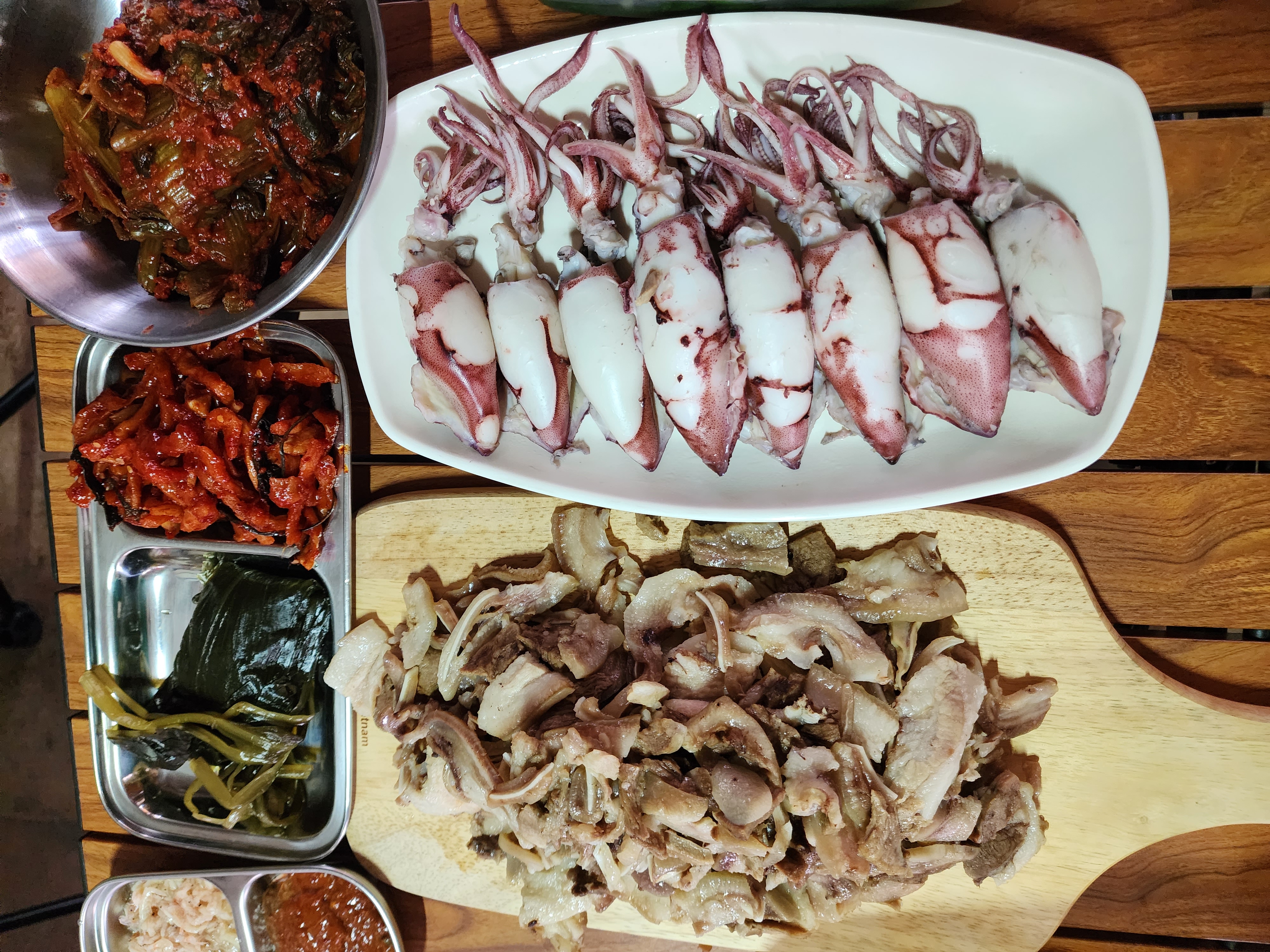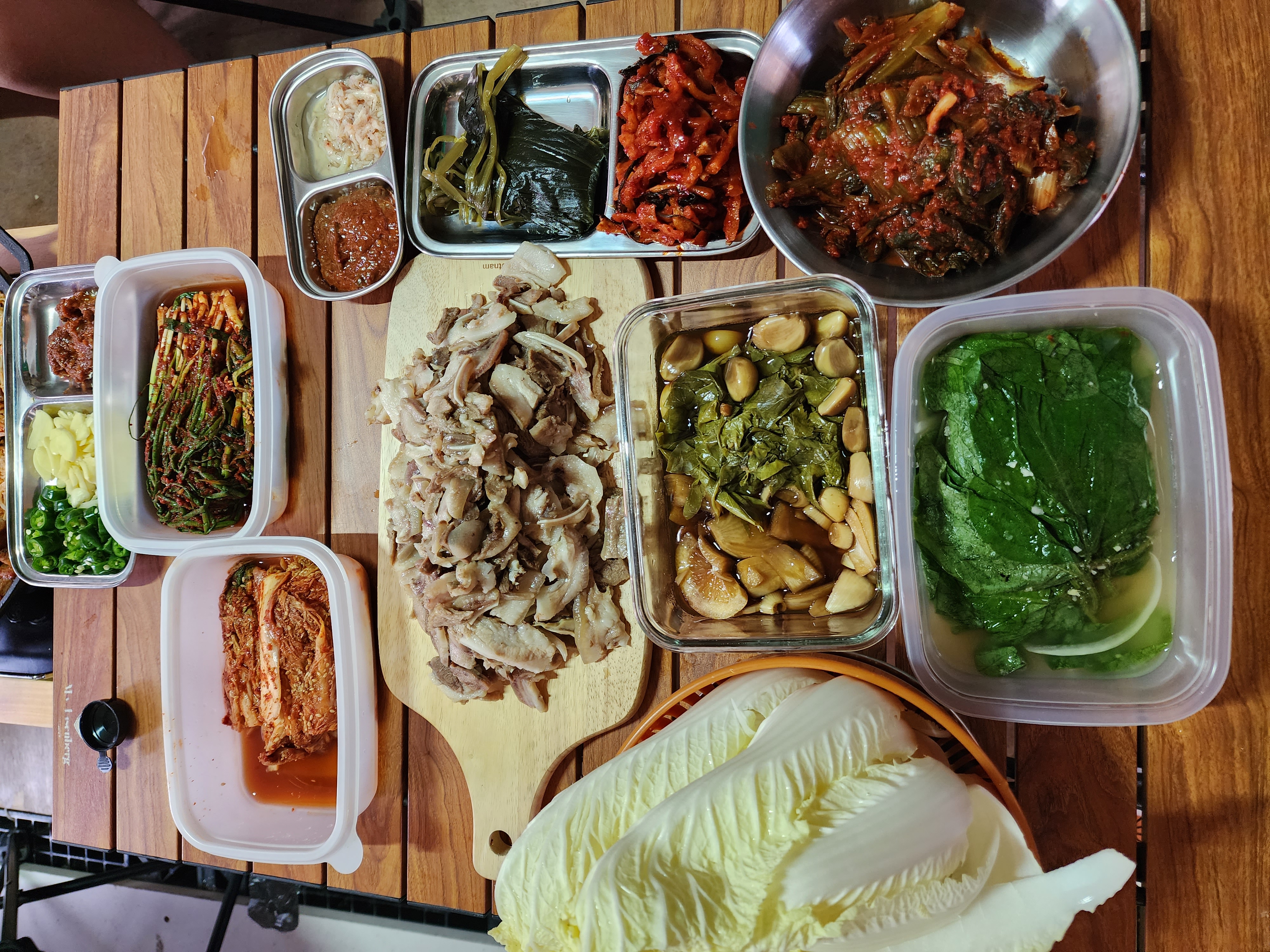 이여름에 신랑이배타고잡아온 한치로 한치통찜을했어용~찜통앞에서 저도죽는줄알았어용ㅎ 그래도 맛나게먹을생각을하니까 참을수있어용~찜통에 한치올리고수육올리고 같이 15~20분 쪄줍니다ㆍ그리고 밑반찬 제가만든 겉절이 배추에 갈치속젓에 새우젓에 파김치 모듬쌈에 미친듯이먹었습니다ㅎ 넘쉬워서 있는재료로 쓱싹 준비끝~한치잡는다고 고생한신랑 잘먹었어용♡여러분도 여름에이열치열이라고하는데 ㅋ한번쯤해보세용??캠핑장에서 오늘에요리였습니다~시원한커피가 땡기는날이였어용♡