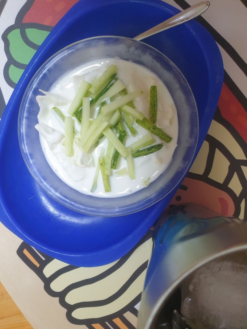 요거트위에 오이와 양배추 썰어서 레몬즙 뿌리면 지중해식 샐러드 완성이예요. 차갑게 먹기 때문에 여름 입맛없을때 먹기 딱 좋아요