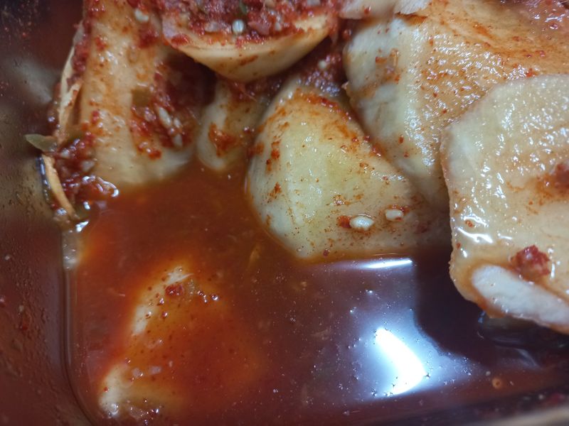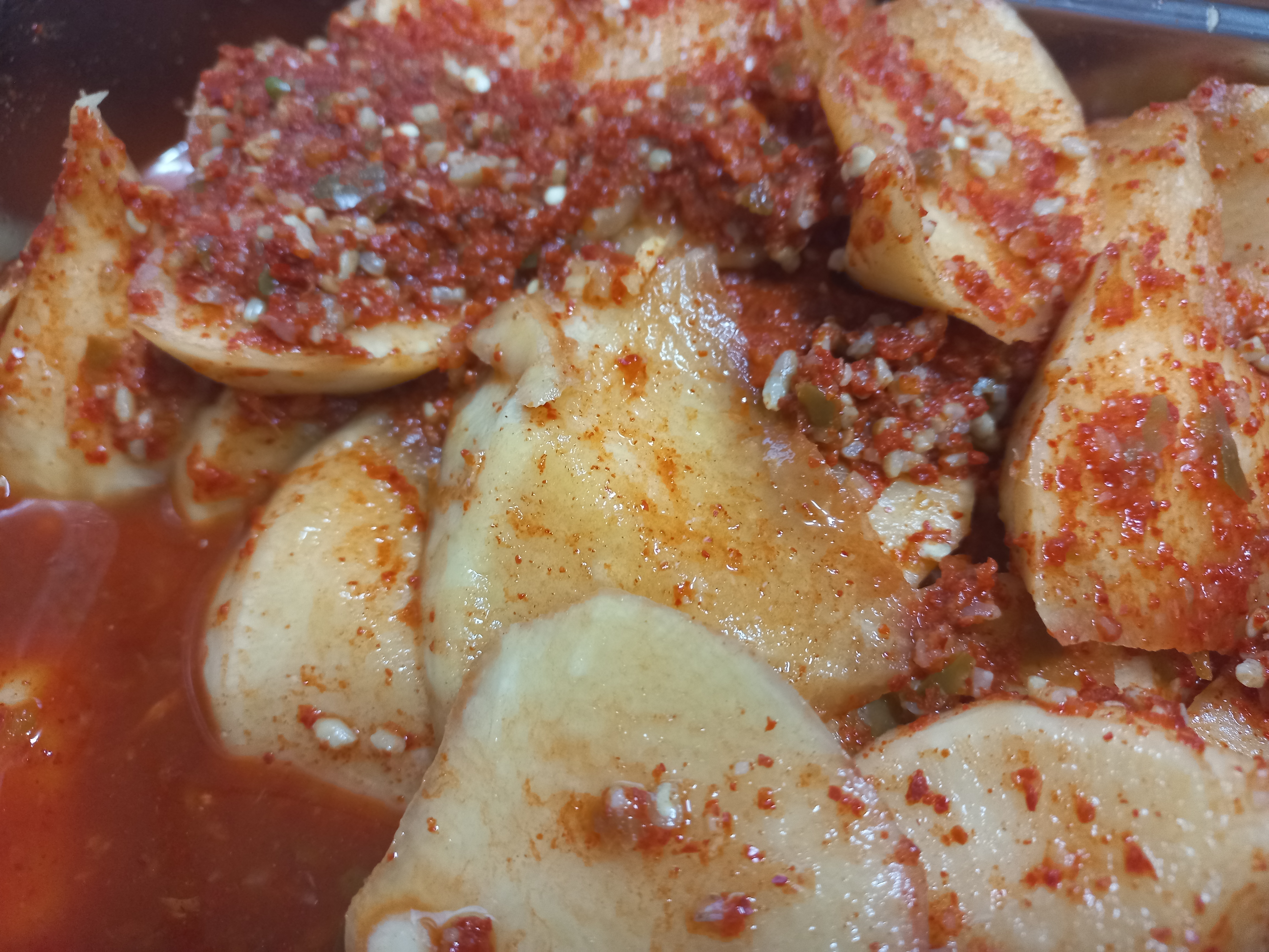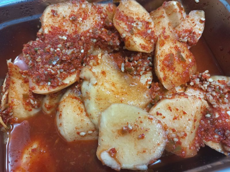 마트에 다시 무값이 저렴해지네요. 큼지막한 무 한 덩어리 사서 슥슥 잘라 양념해두었더니 금세 익어 맛이 들었습니다. 겨울에 담으면 맛이 들기까지 기다림의 시간을 가져야하지만 날이 더운 여름이라 오래 기다리지않아도 좋네요^^ 여름의 몇 안되는 좋은 점입니다ㅋㅋ