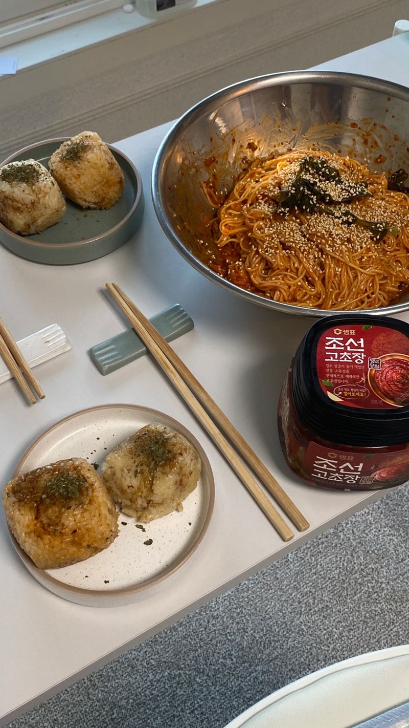 1. 조선고추장과 샘표간장, 연두로 소스를 만든 초간단 열무비빔국수 🍜 2. 조선고추장으로 맛을 낸 김치참치가 들어간 주먹밥을 샘표계란간장을 겉면에 묻혀 고소하게 구워준 주먹밥 🍘