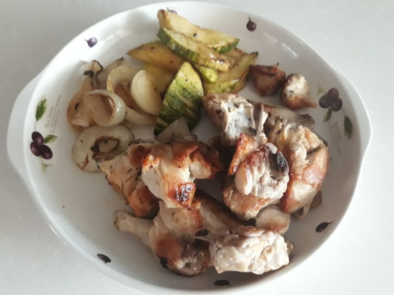 소금 후추 간만 한 닭을 후라이팬에 구우면 맛있고 간편한 닭구이 완성 집에 있는 채소도 같이 구웠어요. 요리를 잘 하지 못하는 저도 쉽게 하는 요리에요.