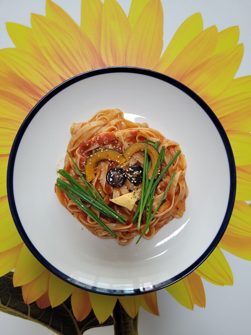 오래간만에 파스타를 만들어 보았어요 호박을 넣었더니 단맛이 감미되 정말 맛있는 파스타를 먹었어요 울 오빠가 너무너무 좋아해요~~~♡
