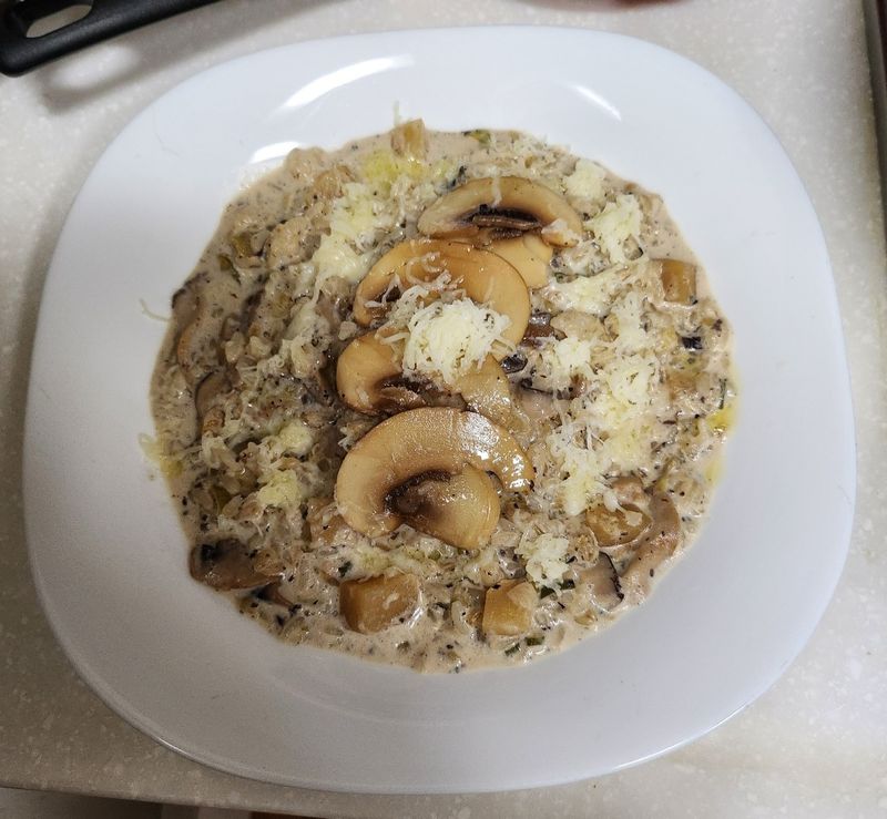 간을 하고 양송이 올려서 채썰어서 치즈 올리고 트러플 오일 올려주면 꿀맛이에요~~^^