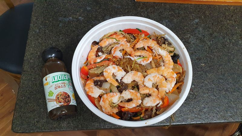 아버지 생신이라 와이프랑 같이 숙주 잡채를 만들었습니다 시금치가 너무 비싸서 숙주나물을 넣어 만들었는데 숙주나물에 식감이 아삭아삭 너무 좋네요 새미네부엌 잡채소스 하나로 맛있는 요리가 되었네요