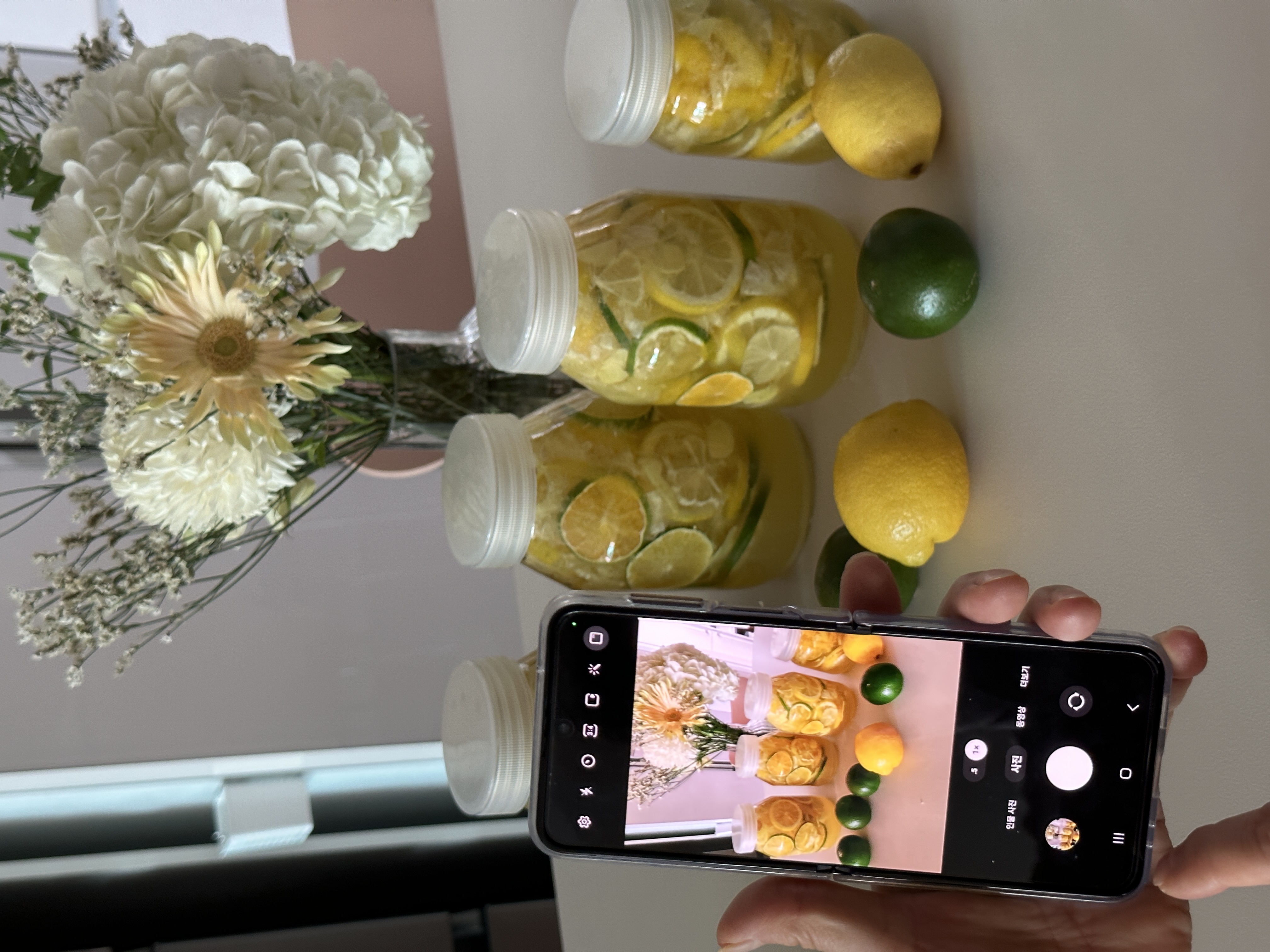 그래서 마침에 집에 청귤도 있어서 레몬만 후딱 주문해서 엄마랑 도란도란 이야기나누며 청귤레몬생강청을 담았네요. 다 만들고나서 엄마는 너무 이뿌다고 사진도 찍으시더라구요~
