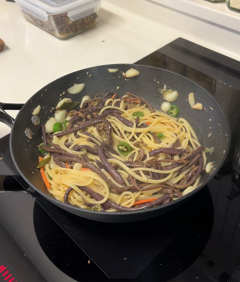 그래서 스파게티면을 넣어 고사리 파스타로 만들었는데, 이게 완전 맛있어서 소울푸드가 될것만같아요.