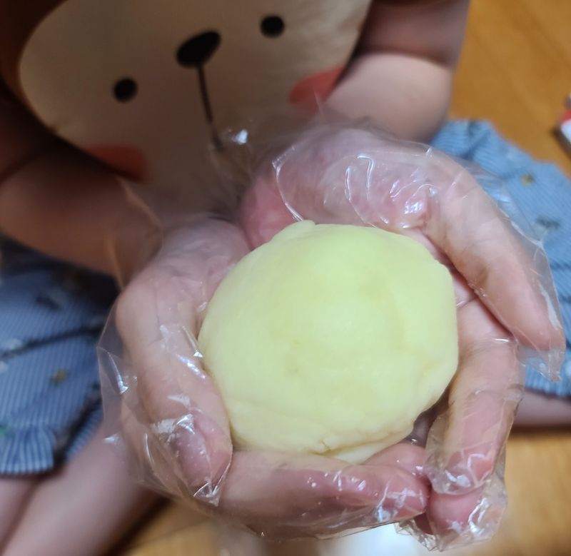 감자6개에 전분4숟갈 정도 넣고 반죽해요
