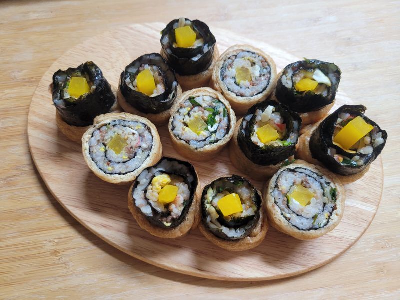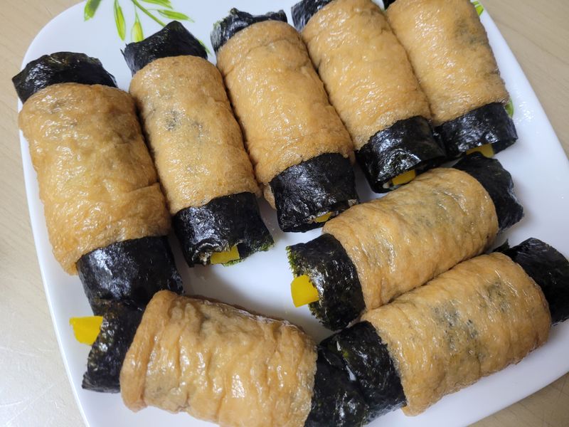 저희가족 제일 사랑하는 음식은 김밥이랍니다. 아무리 먹어도 지겹지 않은 김밥 사먹는 김밥은 또 안먹더라구요. 번거럽지만 열심히 집에서 말아주네요. 저희집 맛은 비결은 맛소금이나 연두로 간을 해용 ㅎㅎㅎㅎㅎㅎㅎㅎㅎ 비밀인데... ㅎㅎ 마지막 사진은 몇일전에 유부사서 만들어본 김밥인데... 요렇게 유부에 말아싸도 맛있네용~~😁