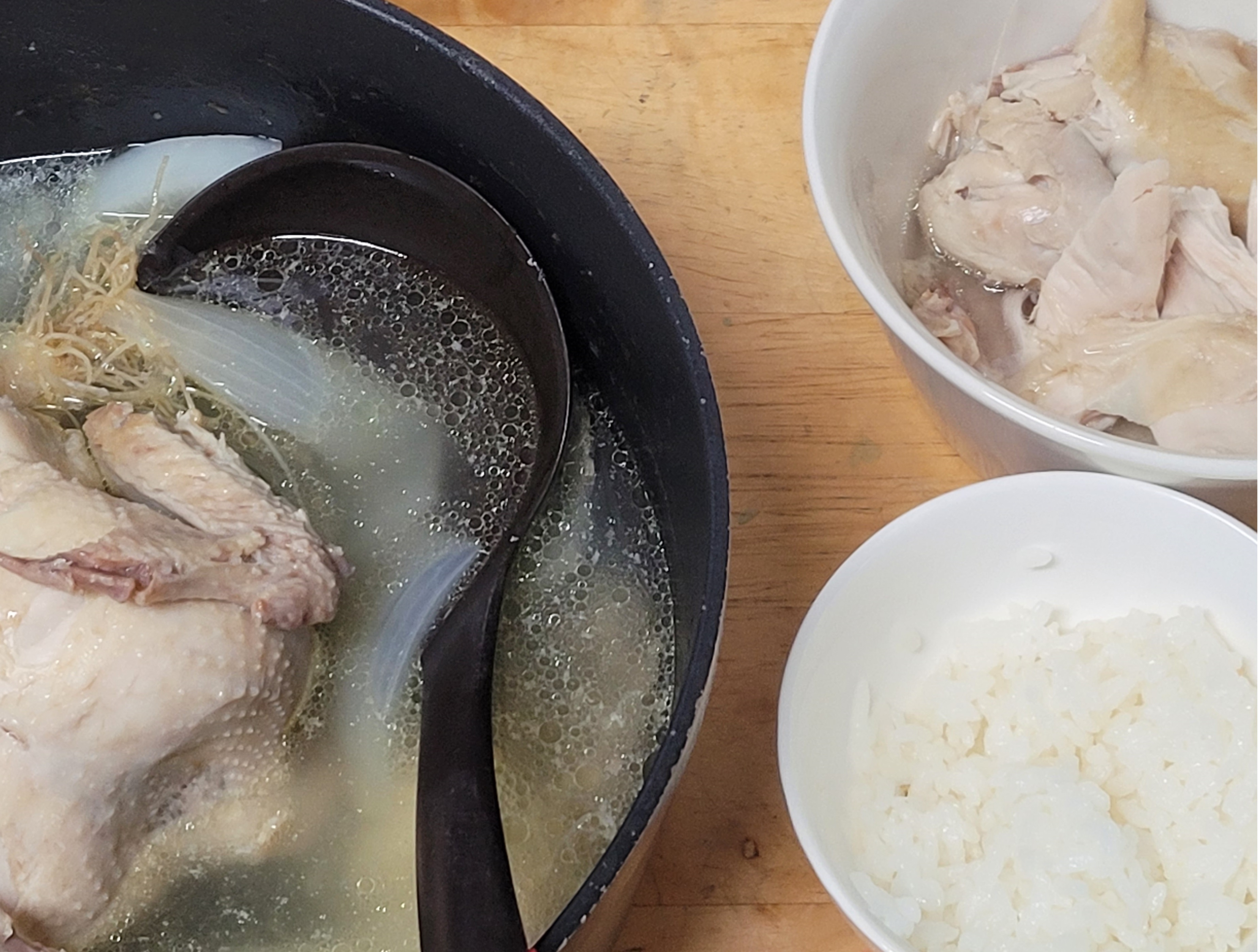 팁 아닌 팁을 말씀드리자면~ 영계백숙을 양파, 대파, 마늘, 청주만 넣고 닭곰탕 끓이듯이 끓인답니다. 이렇게 끓이면 백숙 먹은 뒤 건더기 건지고 살이 남으면 발라내서 넣고 불린 미역과 참치액 또는 국간장으로 간해서 닭미역국도 만들 수 있답니다. 1석 2조로 다음날 먹을 국까지 완성할 수 있으니, 이 어찌 사랑치 않을 수 있을까요~