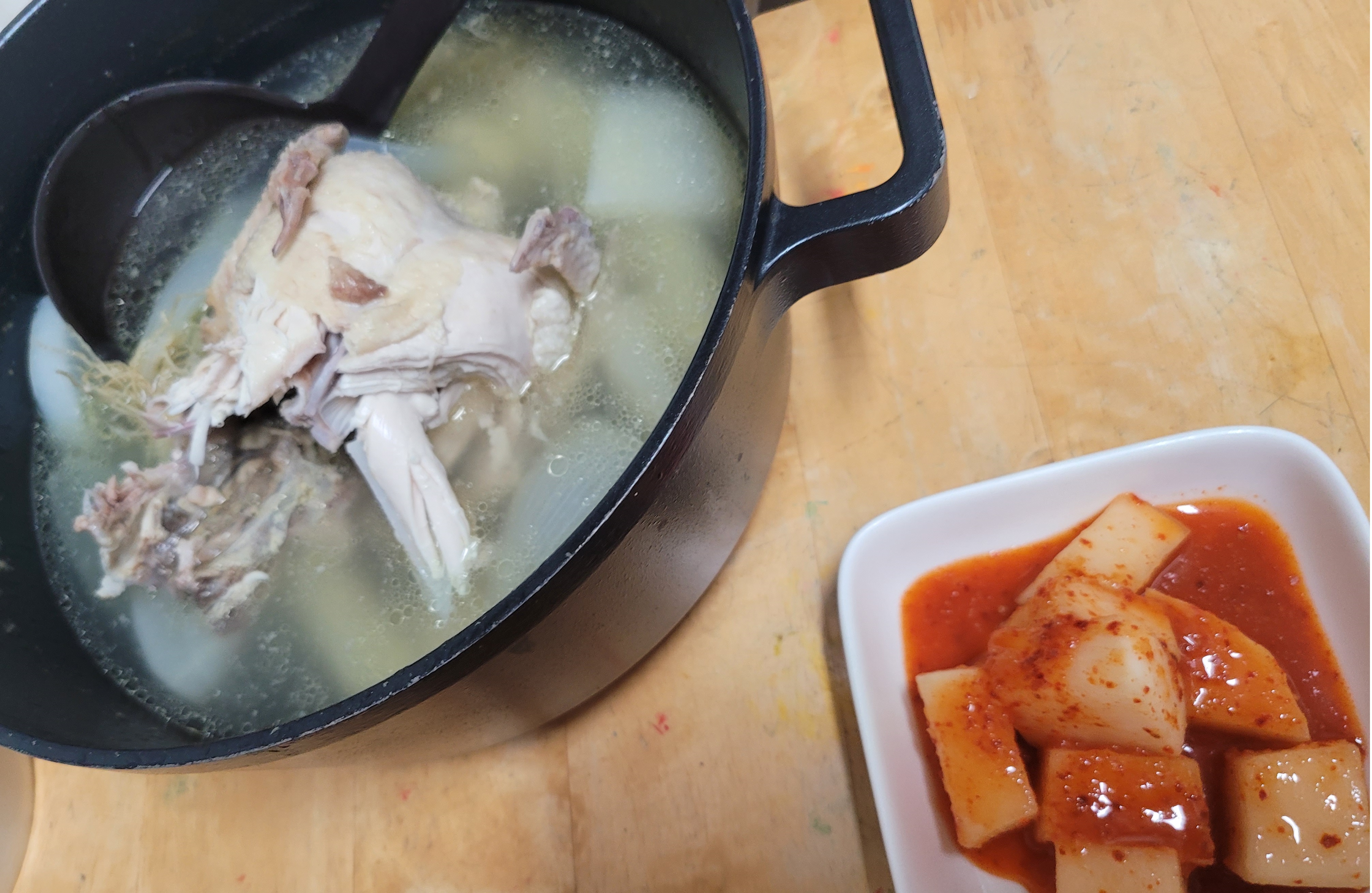 번거로운 준비 없이도 무 하나 사서 새미네 도움만 받으면 백숙과 어울리는 깍두기를 만들 수 있다니, 이 얼마나 편한 세상인지. 브라보~ 짝짝짝!