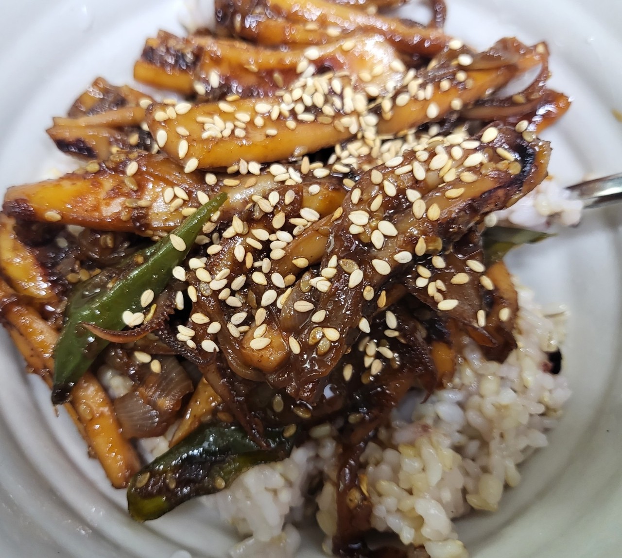 우리집 식구들 모두 좋아하는 미치게 매운 오징어볶음이에요.
