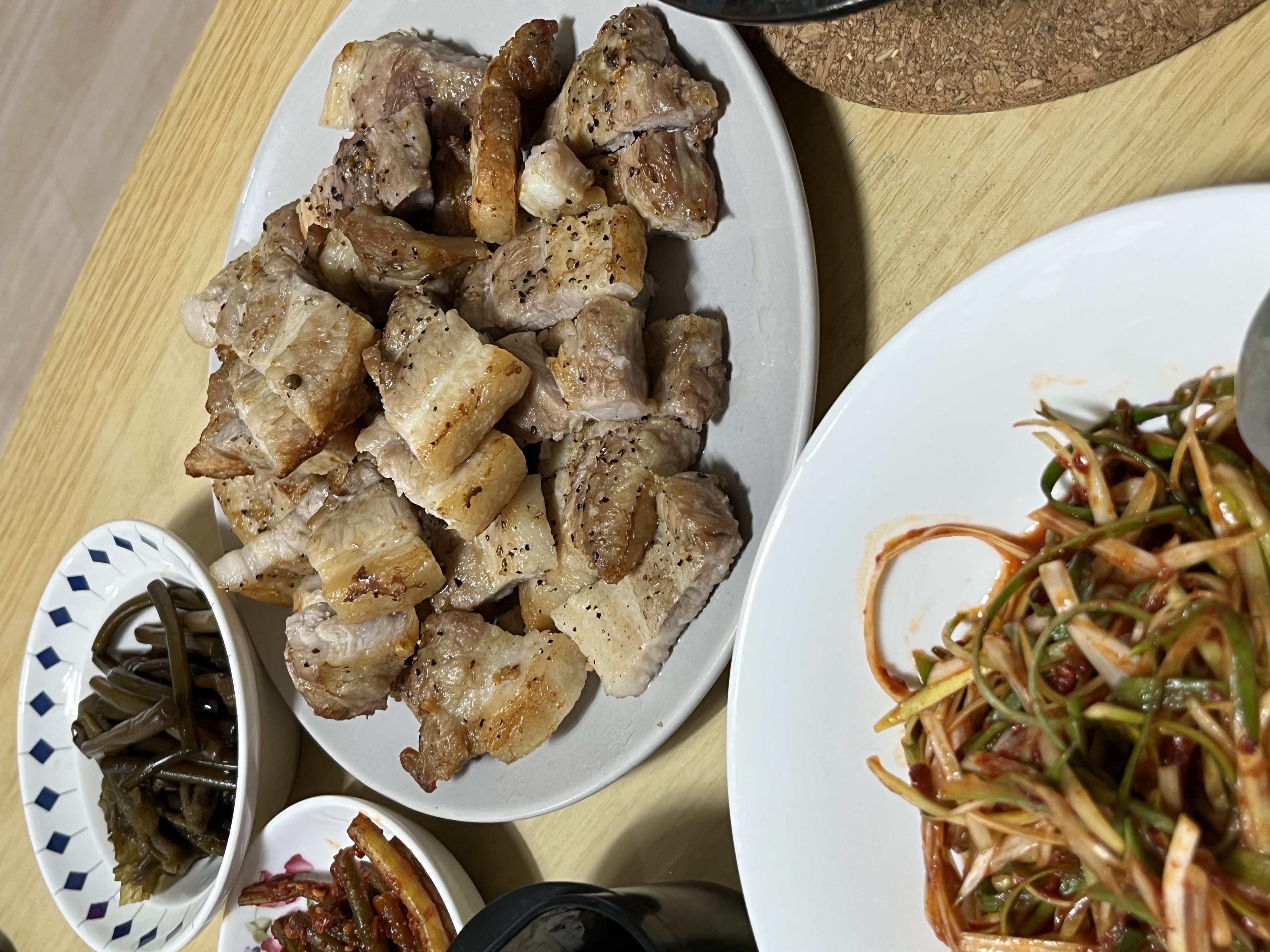 역시 삼겹살은 된장찌개랑 궁합이 최곤 거 같아유 ㅎㅎ