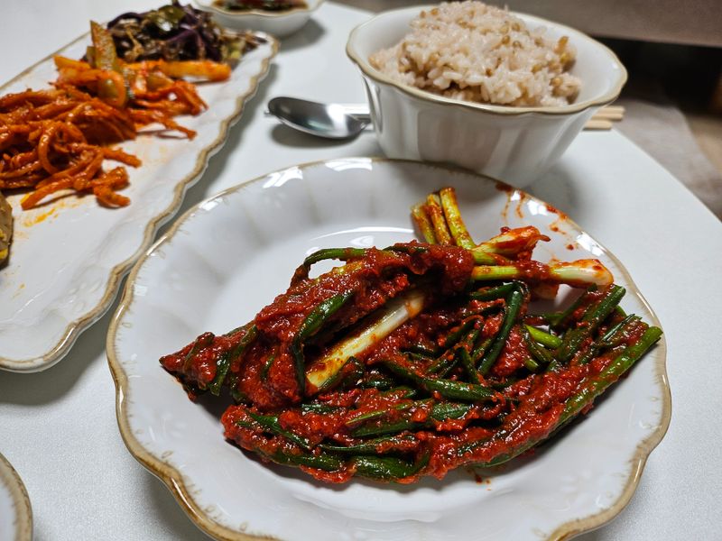 밥상이 너무 푸짐해요. 특히 파김치가 너무 맛있어보이네요 ㅠㅠ