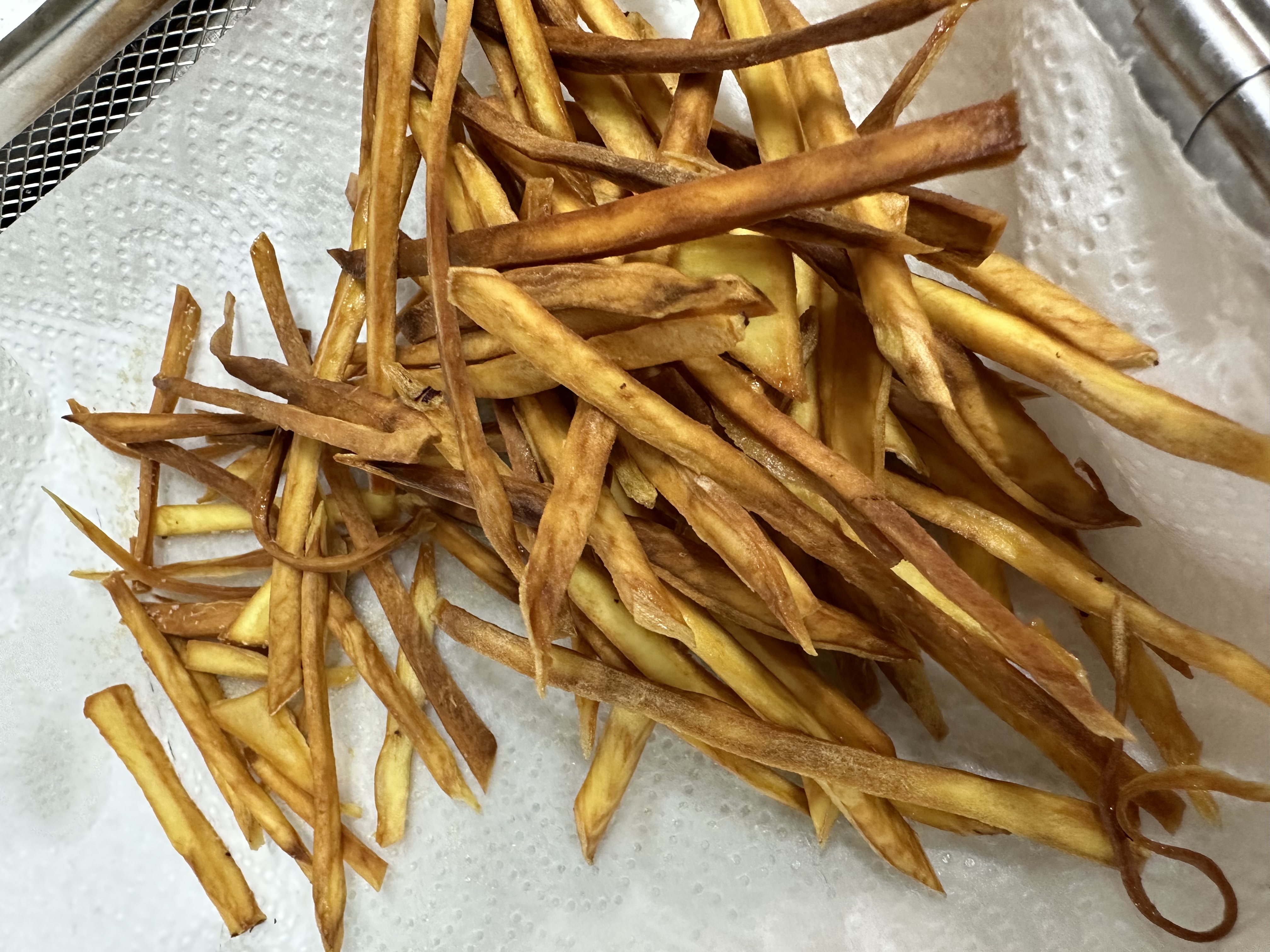막내가 유툽에서 봤다며 고구마 튀김을 해달라고~~ 😂 고구마 얇게 잘라 진짜 튀기기만 하면 되네요 오랫만에 휴게소 간식같고 너무 오독오독 맛있었답니다 여러분도 가을 고구마 제철인데 고구마스틱 간식 해보시길 추천해요 🍠