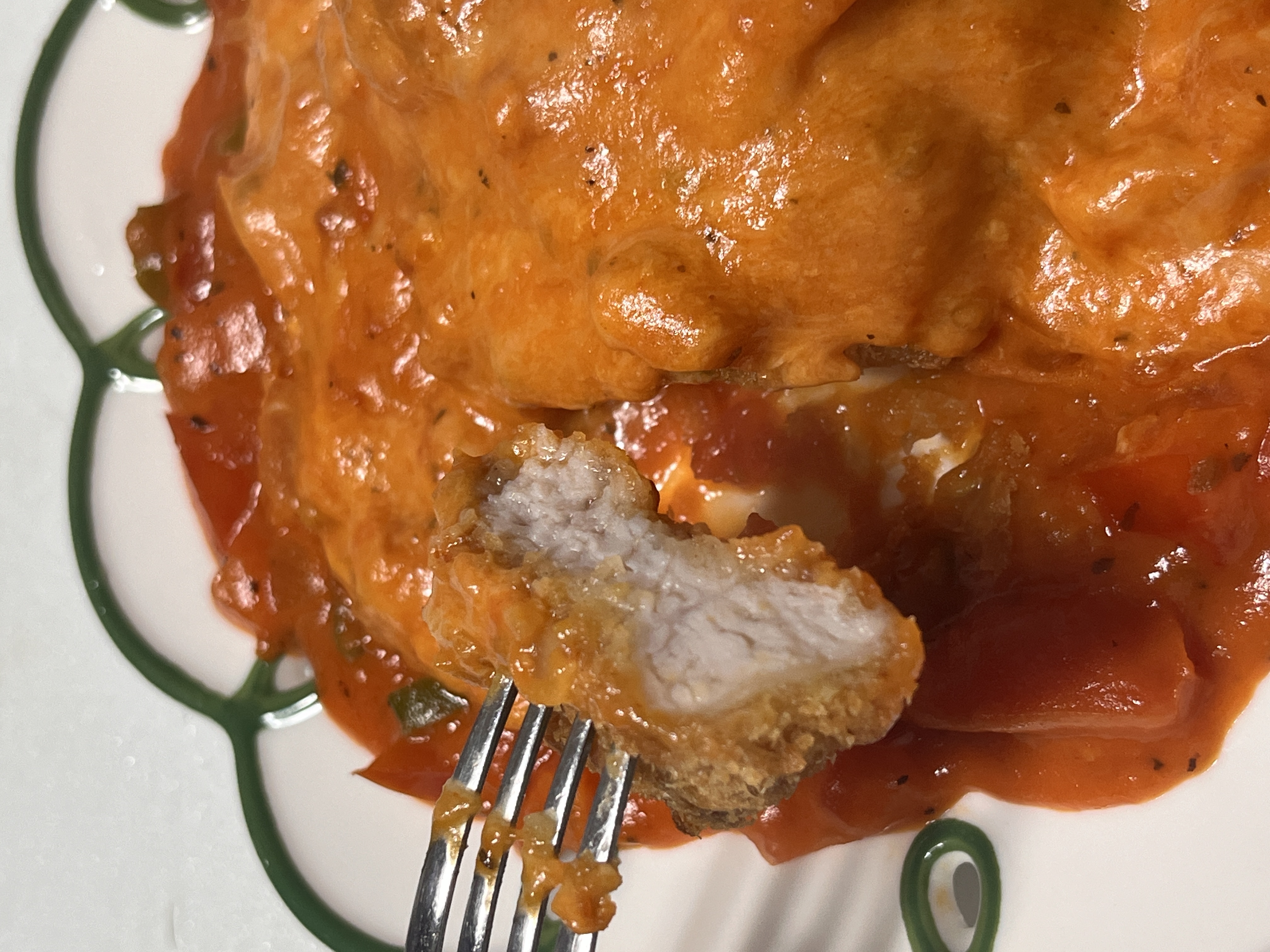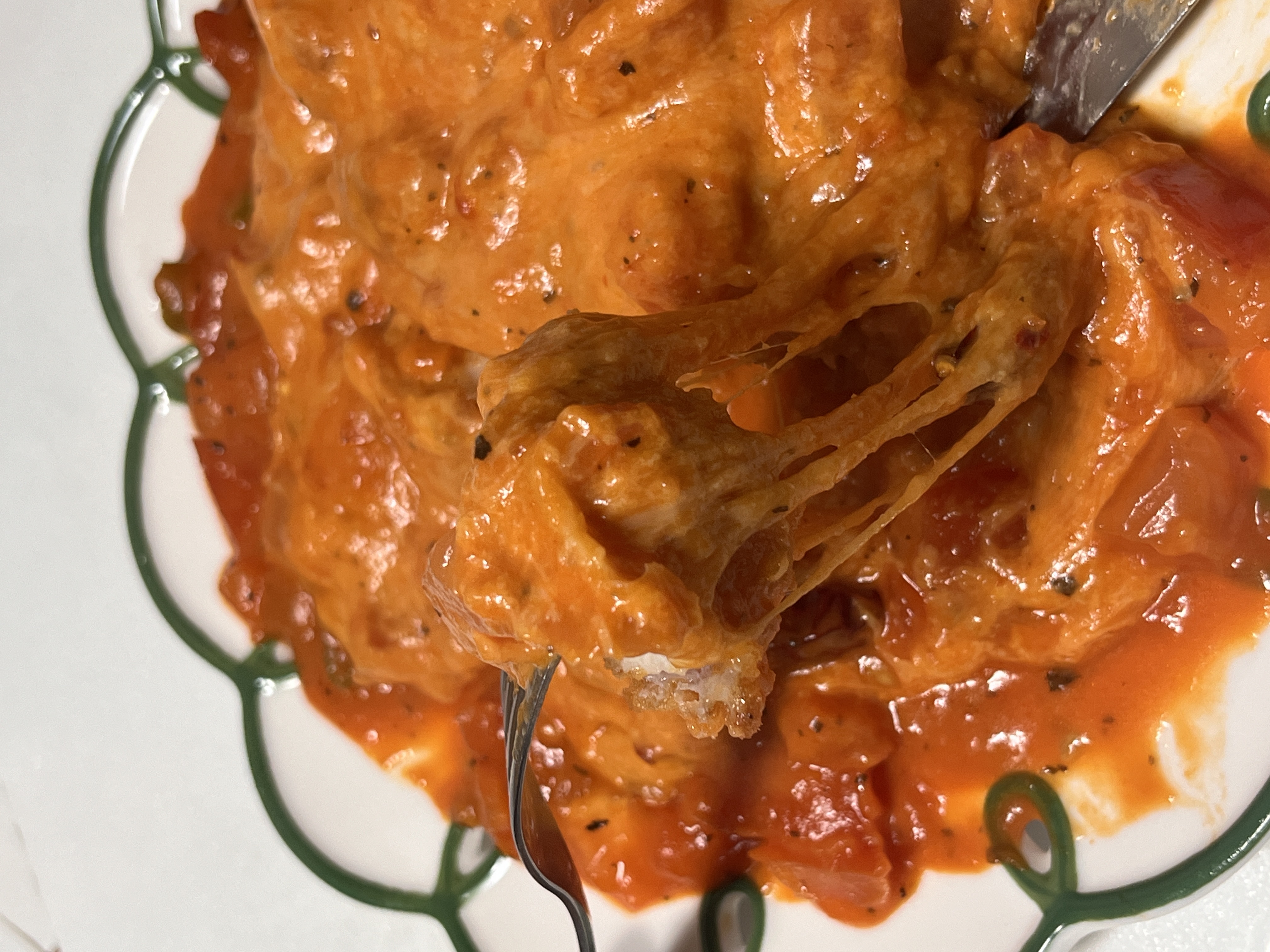 > 남은 파스타소스에 모짜렐라치즈 넣어 녹여주고 돈가스 위에 뿌려주면