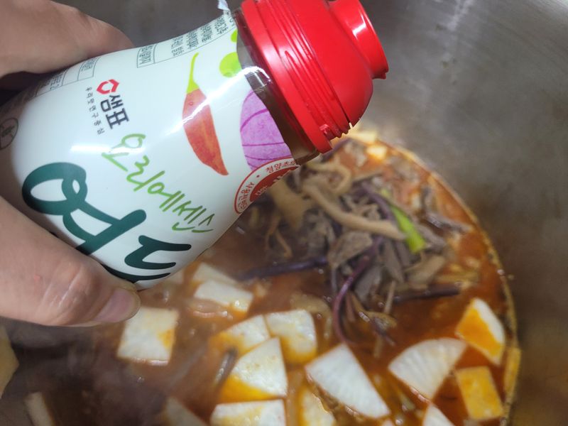 첫눈와서 육개장 끓였는데 청양고추 매운맛 연두 요거요거 요물이네용~~ 첨 사용해봤는데~~매운 연두 넣었을때랑 안넣었을때랑 확실히 차이나고 넘 맛있어용~~ 제 육개장이 맛있긴한데 매운맛연두넣으니 완전 맛집 육개장됐어용~~ 꼭 넣고 끓여보세용~~👍